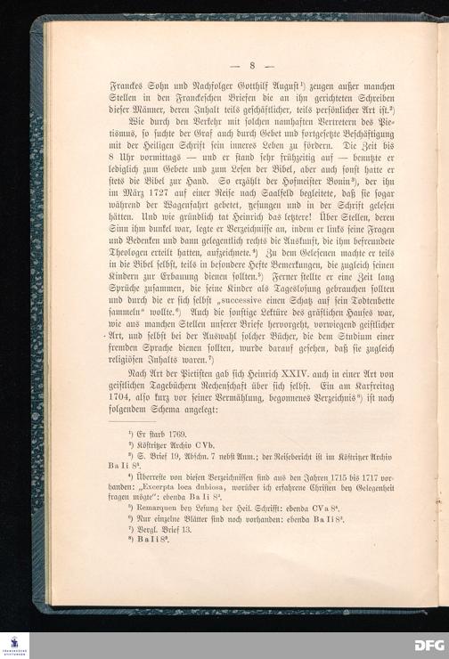 A.H.Franckes Briefe an den Grafen Heinrich XXIV. j.L. Reuß zu Köstritz und seine Gemahlin Eleonore aus den Jahren 1704 bis 1727 als Beitrag zur Geschichte des Pietismus herausgegeben von Dr.Berthold Schmidt Fürstl.Reuß j.L.Archivrat und Lic.theol. Otto Meusel Gymnasialoberlehrer in Schleiz. Leipzig, Verlag der Dürr'schen Buchhandlung 1905.