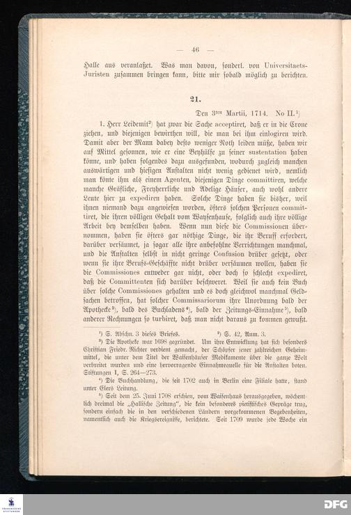 A.H.Franckes Briefe an den Grafen Heinrich XXIV. j.L. Reuß zu Köstritz und seine Gemahlin Eleonore aus den Jahren 1704 bis 1727 als Beitrag zur Geschichte des Pietismus herausgegeben von Dr.Berthold Schmidt Fürstl.Reuß j.L.Archivrat und Lic.theol. Otto Meusel Gymnasialoberlehrer in Schleiz. Leipzig, Verlag der Dürr'schen Buchhandlung 1905.