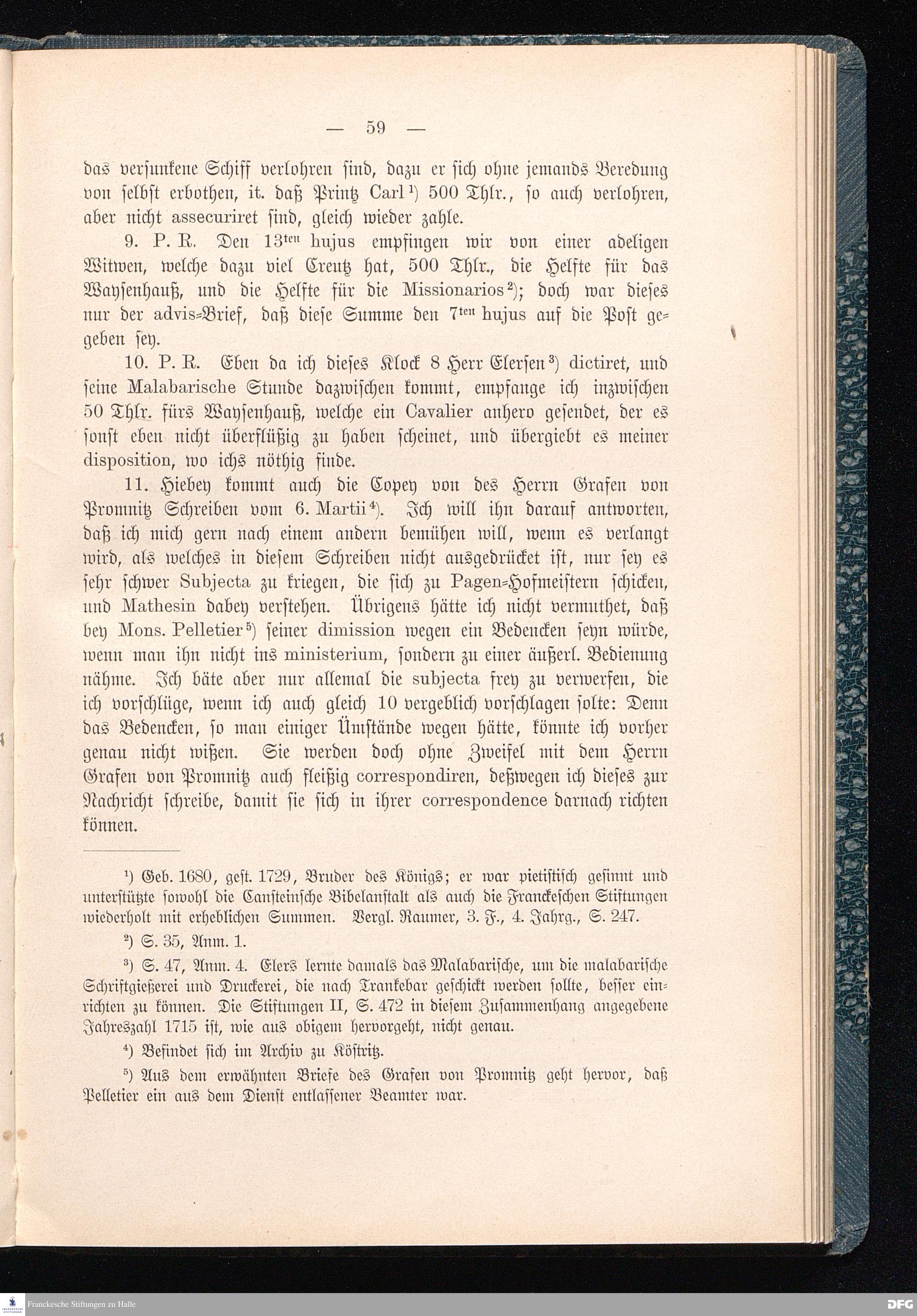 A.H.Franckes Briefe an den Grafen Heinrich XXIV. j.L. Reuß zu Köstritz und seine Gemahlin Eleonore aus den Jahren 1704 bis 1727 als Beitrag zur Geschichte des Pietismus herausgegeben von Dr.Berthold Schmidt Fürstl.Reuß j.L.Archivrat und Lic.theol. Otto Meusel Gymnasialoberlehrer in Schleiz. Leipzig, Verlag der Dürr'schen Buchhandlung 1905.