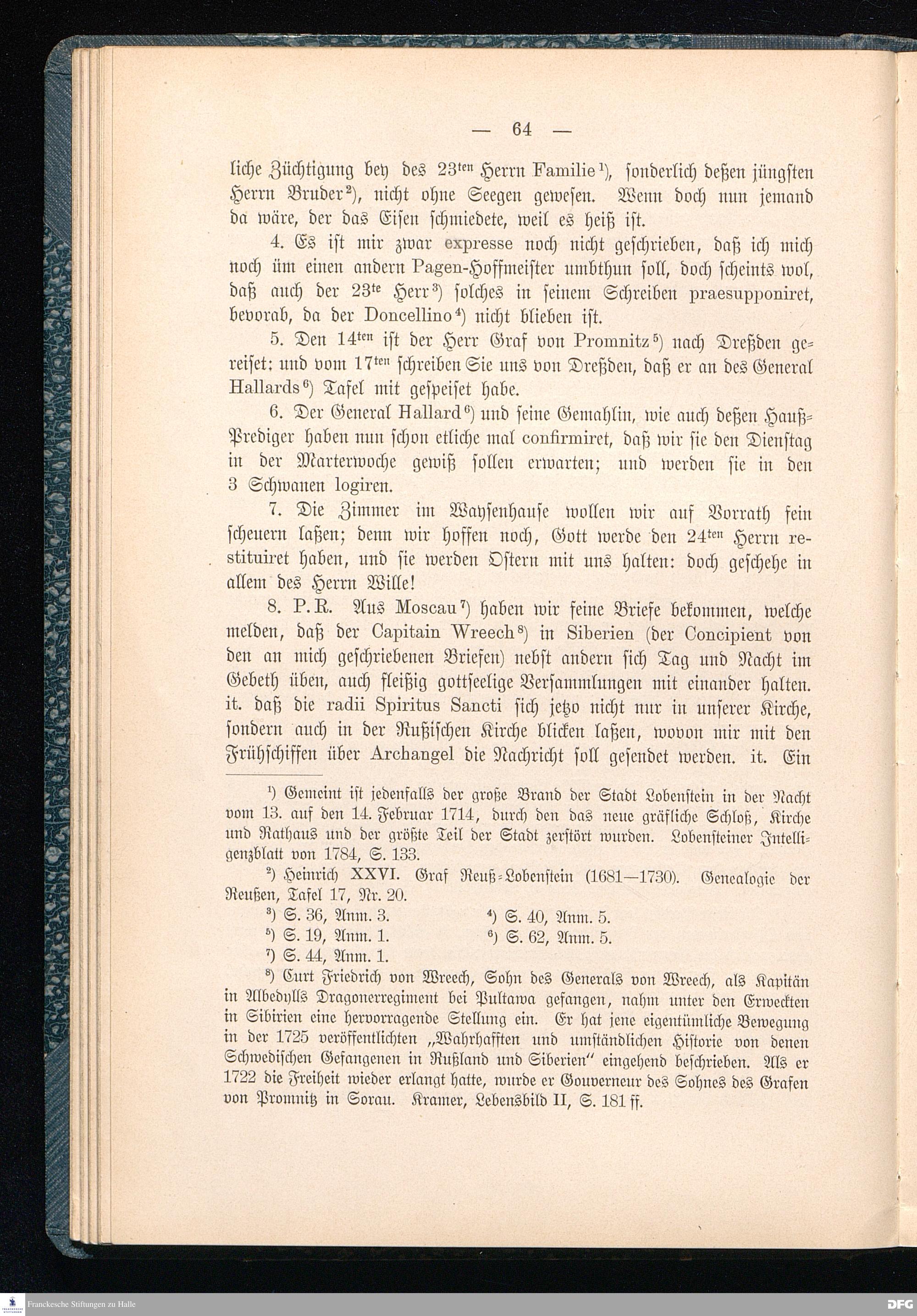 A.H.Franckes Briefe an den Grafen Heinrich XXIV. j.L. Reuß zu Köstritz und seine Gemahlin Eleonore aus den Jahren 1704 bis 1727 als Beitrag zur Geschichte des Pietismus herausgegeben von Dr.Berthold Schmidt Fürstl.Reuß j.L.Archivrat und Lic.theol. Otto Meusel Gymnasialoberlehrer in Schleiz. Leipzig, Verlag der Dürr'schen Buchhandlung 1905.
