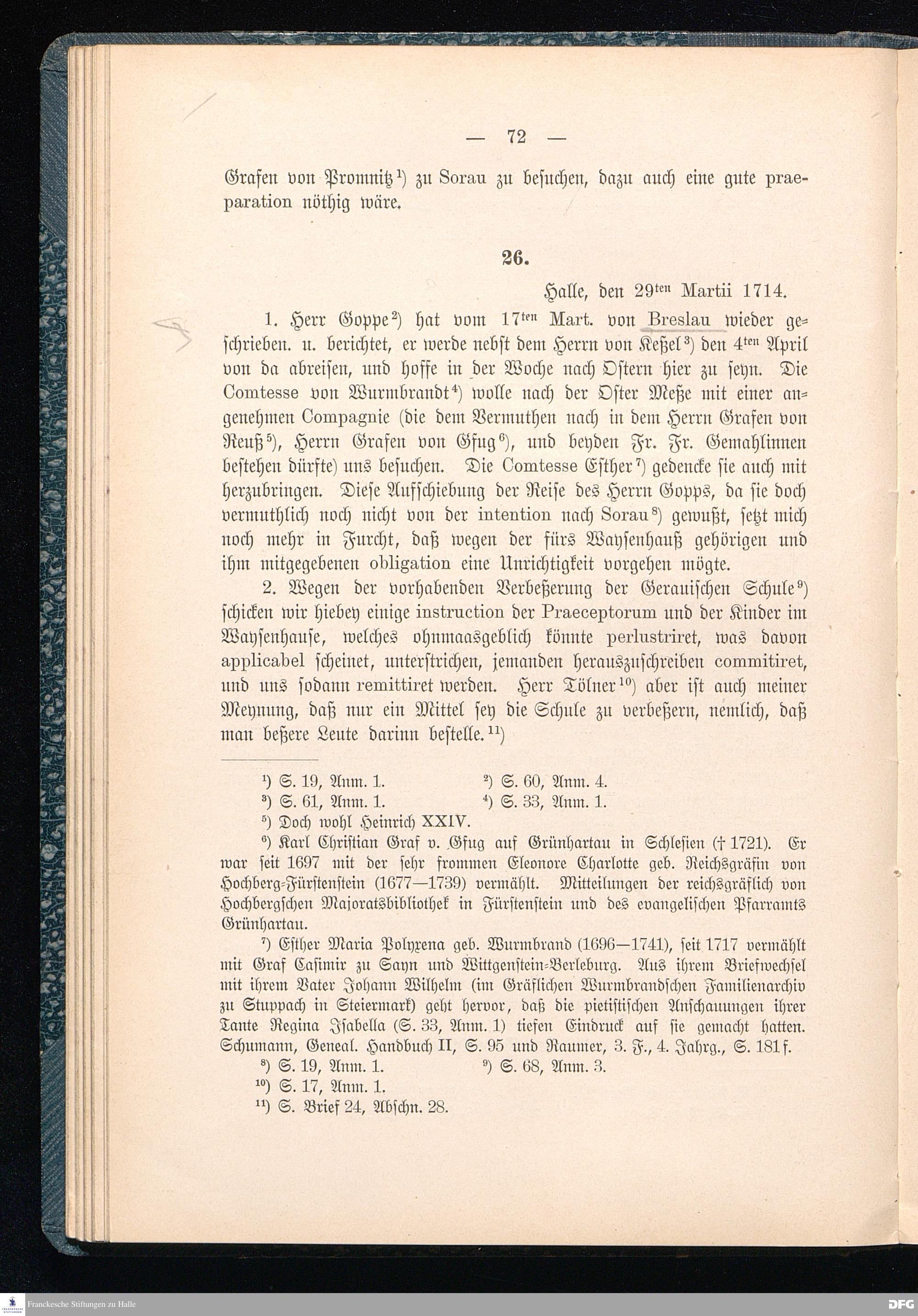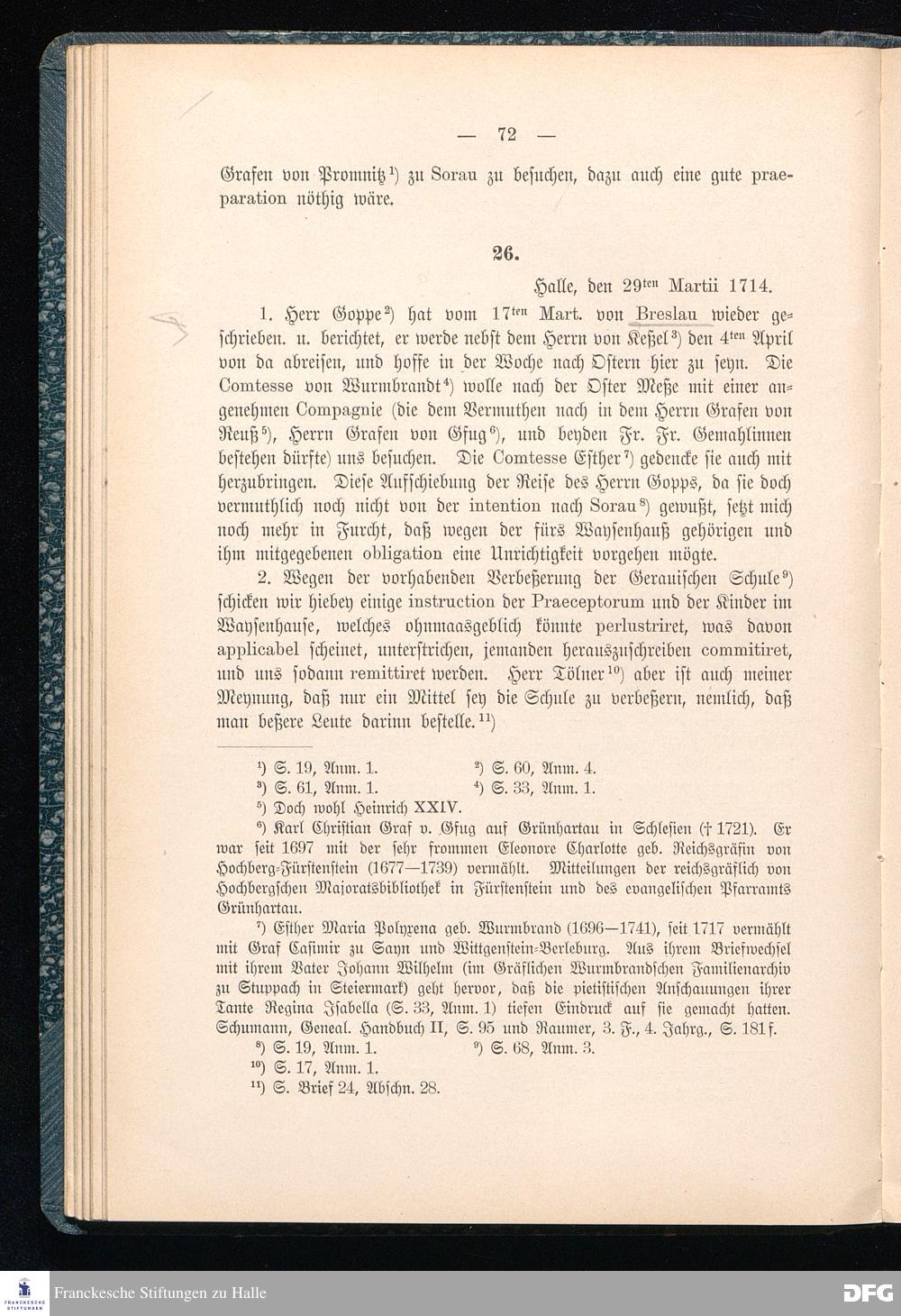 A.H.Franckes Briefe an den Grafen Heinrich XXIV. j.L. Reuß zu Köstritz und seine Gemahlin Eleonore aus den Jahren 1704 bis 1727 als Beitrag zur Geschichte des Pietismus herausgegeben von Dr.Berthold Schmidt Fürstl.Reuß j.L.Archivrat und Lic.theol. Otto Meusel Gymnasialoberlehrer in Schleiz. Leipzig, Verlag der Dürr'schen Buchhandlung 1905.