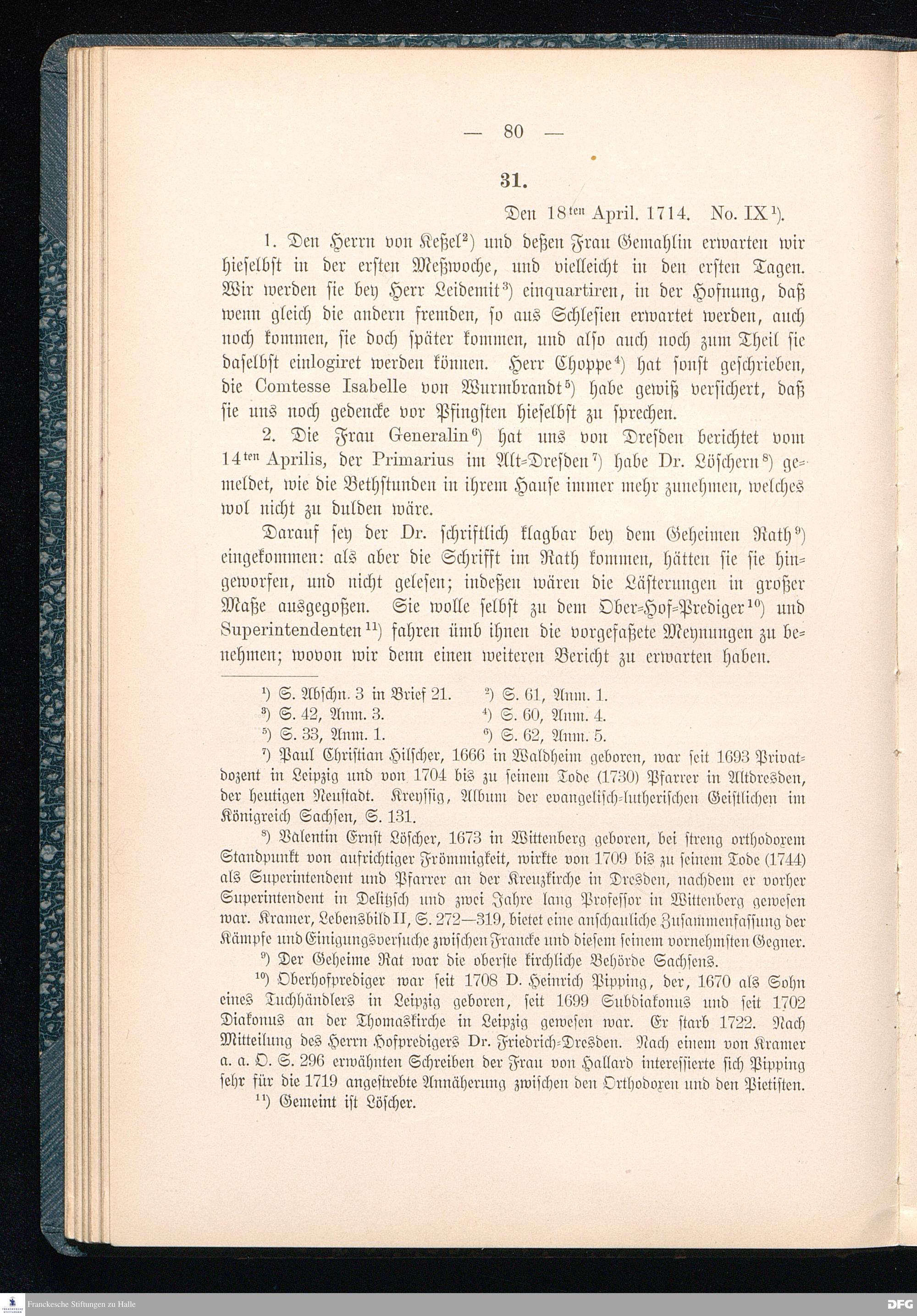 A.H.Franckes Briefe an den Grafen Heinrich XXIV. j.L. Reuß zu Köstritz und seine Gemahlin Eleonore aus den Jahren 1704 bis 1727 als Beitrag zur Geschichte des Pietismus herausgegeben von Dr.Berthold Schmidt Fürstl.Reuß j.L.Archivrat und Lic.theol. Otto Meusel Gymnasialoberlehrer in Schleiz. Leipzig, Verlag der Dürr'schen Buchhandlung 1905.