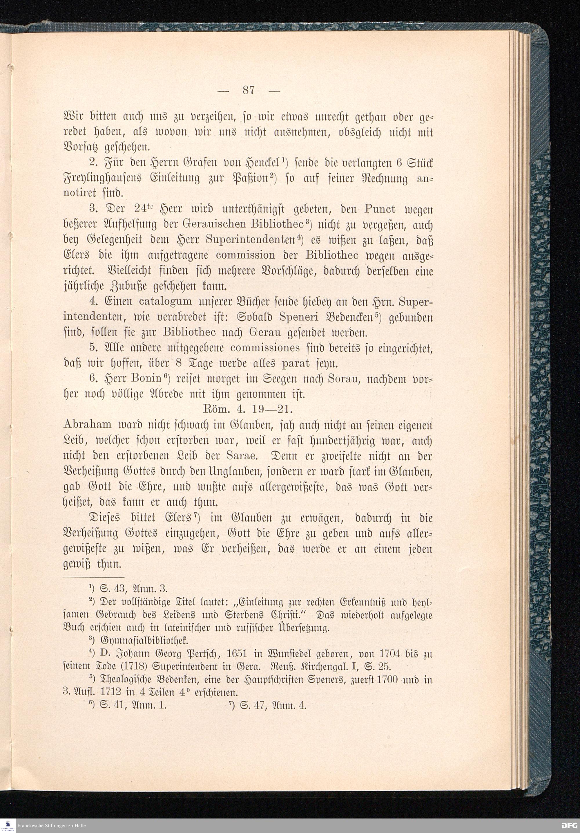 A.H.Franckes Briefe an den Grafen Heinrich XXIV. j.L. Reuß zu Köstritz und seine Gemahlin Eleonore aus den Jahren 1704 bis 1727 als Beitrag zur Geschichte des Pietismus herausgegeben von Dr.Berthold Schmidt Fürstl.Reuß j.L.Archivrat und Lic.theol. Otto Meusel Gymnasialoberlehrer in Schleiz. Leipzig, Verlag der Dürr'schen Buchhandlung 1905.