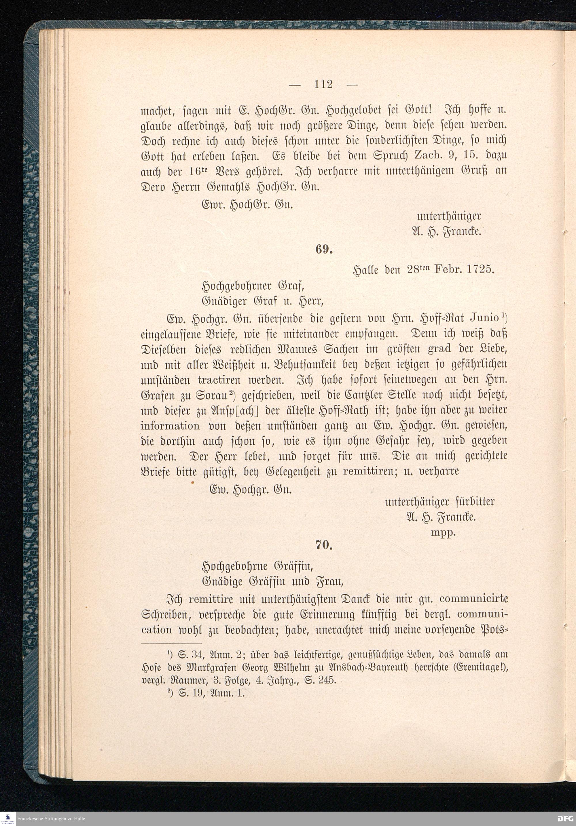 A.H.Franckes Briefe an den Grafen Heinrich XXIV. j.L. Reuß zu Köstritz und seine Gemahlin Eleonore aus den Jahren 1704 bis 1727 als Beitrag zur Geschichte des Pietismus herausgegeben von Dr.Berthold Schmidt Fürstl.Reuß j.L.Archivrat und Lic.theol. Otto Meusel Gymnasialoberlehrer in Schleiz. Leipzig, Verlag der Dürr'schen Buchhandlung 1905.