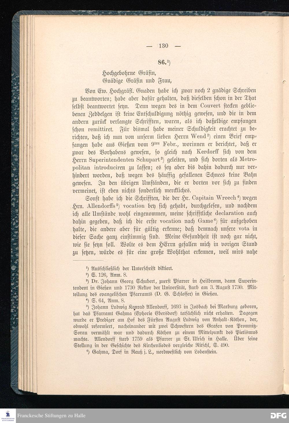 A.H.Franckes Briefe an den Grafen Heinrich XXIV. j.L. Reuß zu Köstritz und seine Gemahlin Eleonore aus den Jahren 1704 bis 1727 als Beitrag zur Geschichte des Pietismus herausgegeben von Dr.Berthold Schmidt Fürstl.Reuß j.L.Archivrat und Lic.theol. Otto Meusel Gymnasialoberlehrer in Schleiz. Leipzig, Verlag der Dürr'schen Buchhandlung 1905.