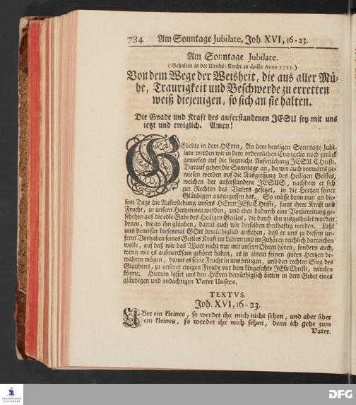 August Hermann Franckens, S.Theol.Prof.und Past. Sonn= und Fest=Tags=Predigten / Welche Theils in Halle, theils an verschiedenen auswärtigen Oertern, von wichtigen und auserlesenen Materien gehalten worden, Nebst Vorbereitung auf die hohen Feste und nützlichen Registern. Dritte Auflage. HALLE, gedruckt und verlegt im Wäysen=Hause MDCCXL. Mit Königl.Preuß.und Churfl.Brandenb.Privileg.