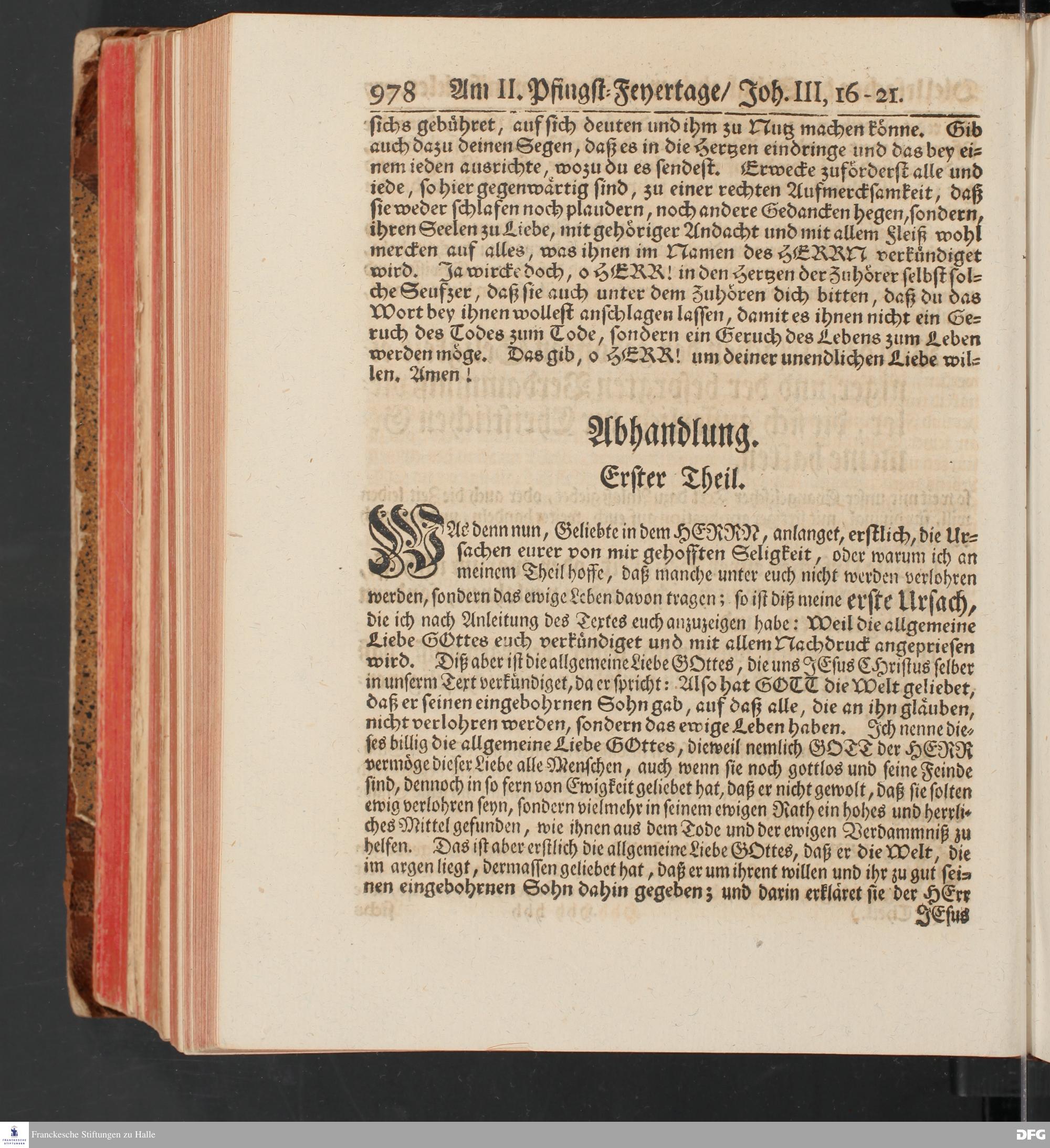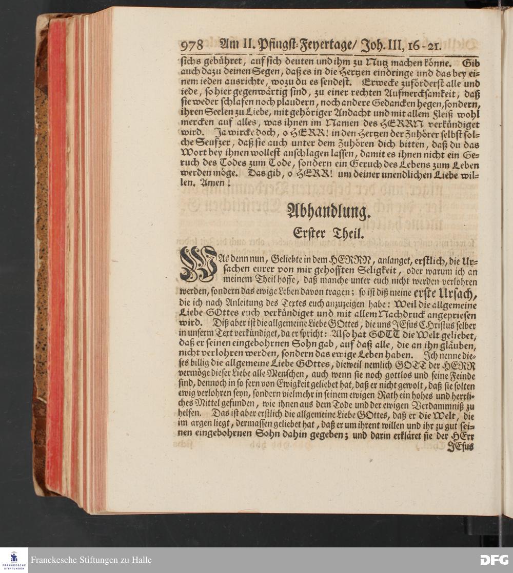 August Hermann Franckens, S.Theol.Prof.und Past. Sonn= und Fest=Tags=Predigten / Welche Theils in Halle, theils an verschiedenen auswärtigen Oertern, von wichtigen und auserlesenen Materien gehalten worden, Nebst Vorbereitung auf die hohen Feste und nützlichen Registern. Dritte Auflage. HALLE, gedruckt und verlegt im Wäysen=Hause MDCCXL. Mit Königl.Preuß.und Churfl.Brandenb.Privileg.