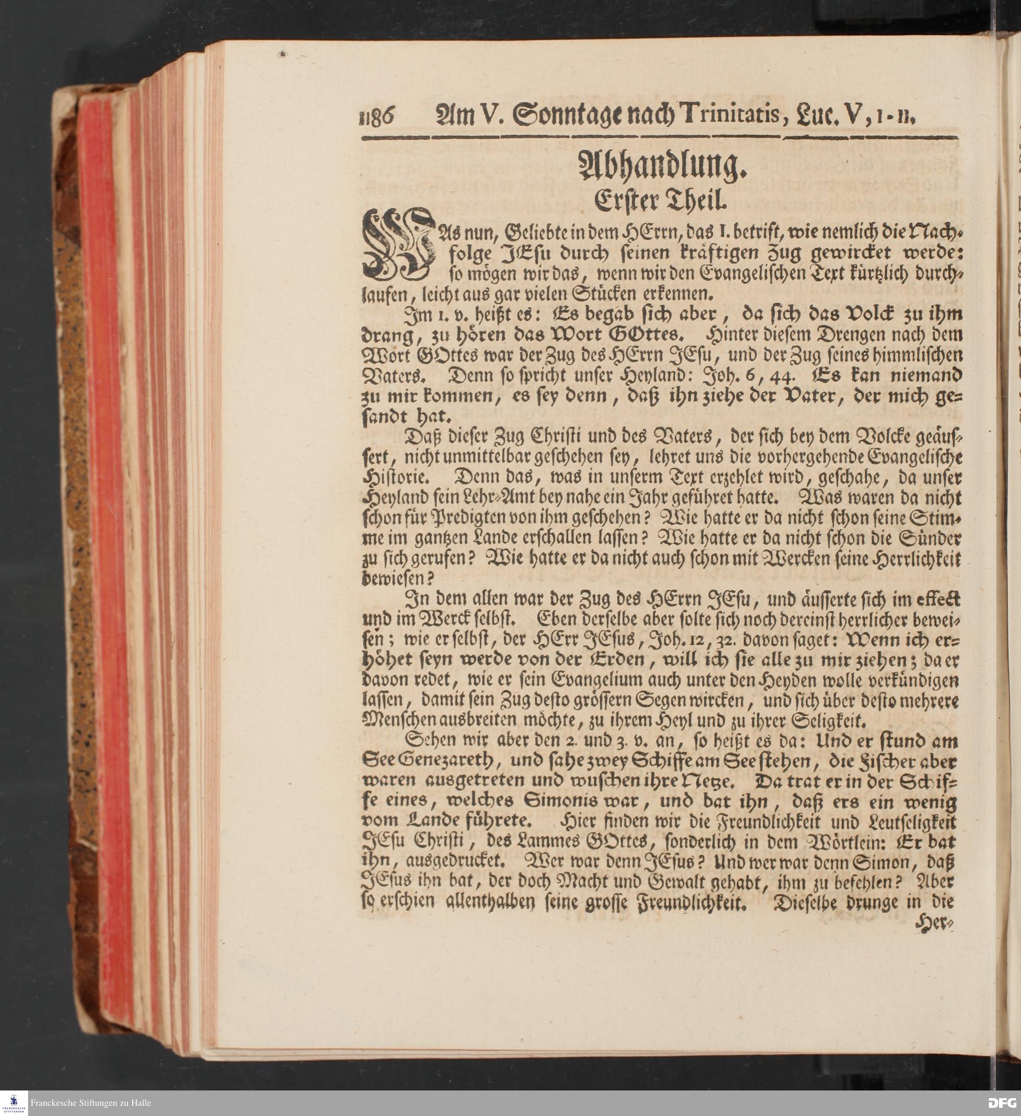 August Hermann Franckens, S.Theol.Prof.und Past. Sonn= und Fest=Tags=Predigten / Welche Theils in Halle, theils an verschiedenen auswärtigen Oertern, von wichtigen und auserlesenen Materien gehalten worden, Nebst Vorbereitung auf die hohen Feste und nützlichen Registern. Dritte Auflage. HALLE, gedruckt und verlegt im Wäysen=Hause MDCCXL. Mit Königl.Preuß.und Churfl.Brandenb.Privileg.
