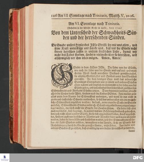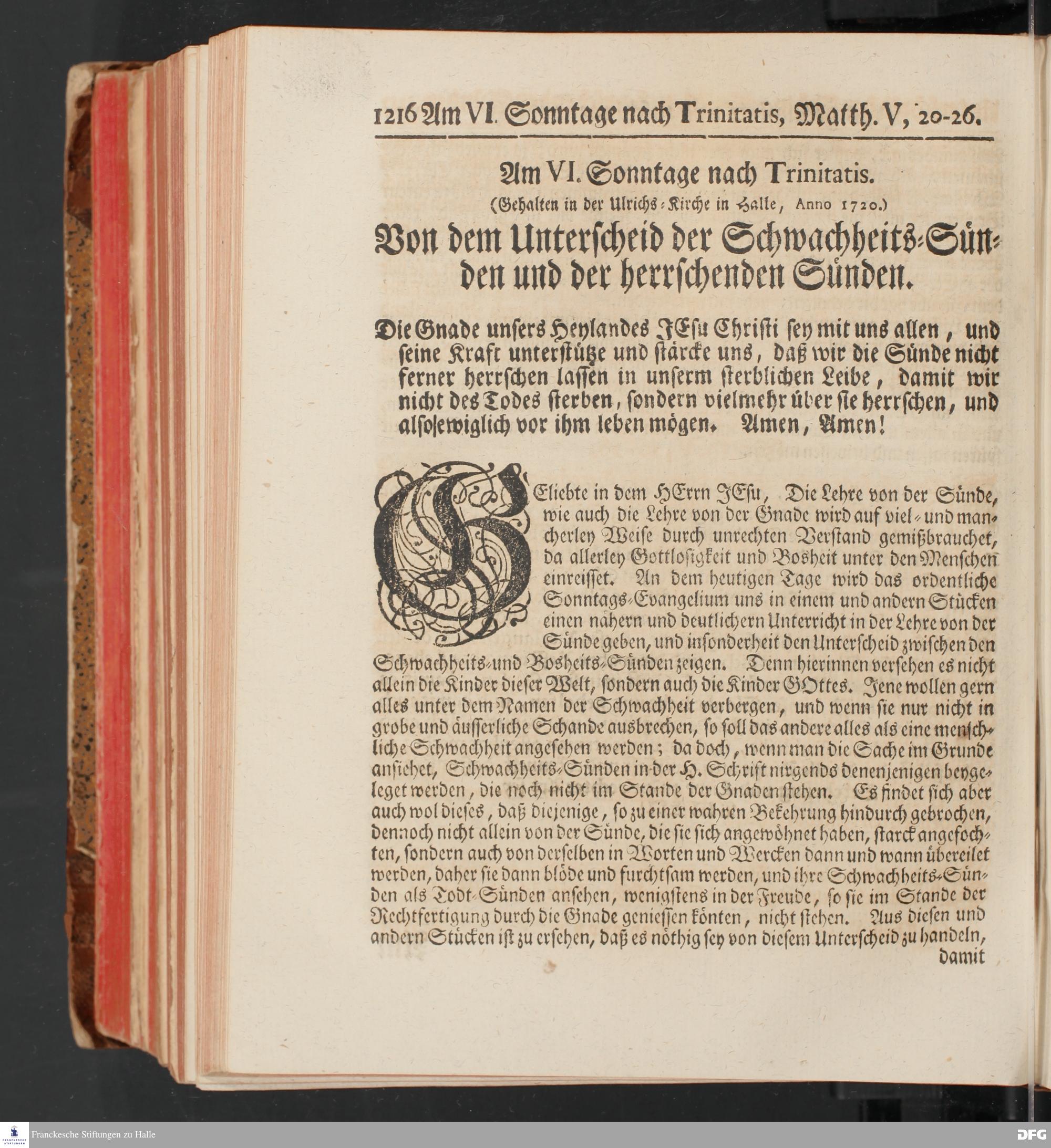 August Hermann Franckens, S.Theol.Prof.und Past. Sonn= und Fest=Tags=Predigten / Welche Theils in Halle, theils an verschiedenen auswärtigen Oertern, von wichtigen und auserlesenen Materien gehalten worden, Nebst Vorbereitung auf die hohen Feste und nützlichen Registern. Dritte Auflage. HALLE, gedruckt und verlegt im Wäysen=Hause MDCCXL. Mit Königl.Preuß.und Churfl.Brandenb.Privileg.