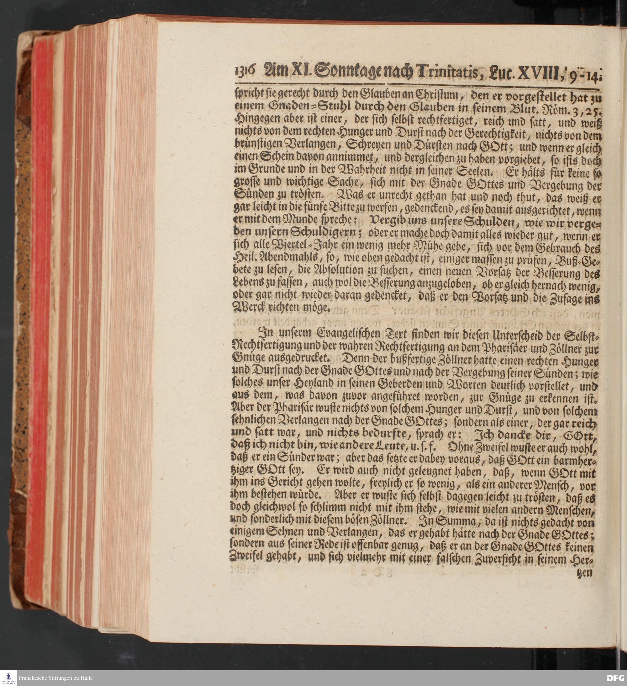 August Hermann Franckens, S.Theol.Prof.und Past. Sonn= und Fest=Tags=Predigten / Welche Theils in Halle, theils an verschiedenen auswärtigen Oertern, von wichtigen und auserlesenen Materien gehalten worden, Nebst Vorbereitung auf die hohen Feste und nützlichen Registern. Dritte Auflage. HALLE, gedruckt und verlegt im Wäysen=Hause MDCCXL. Mit Königl.Preuß.und Churfl.Brandenb.Privileg.