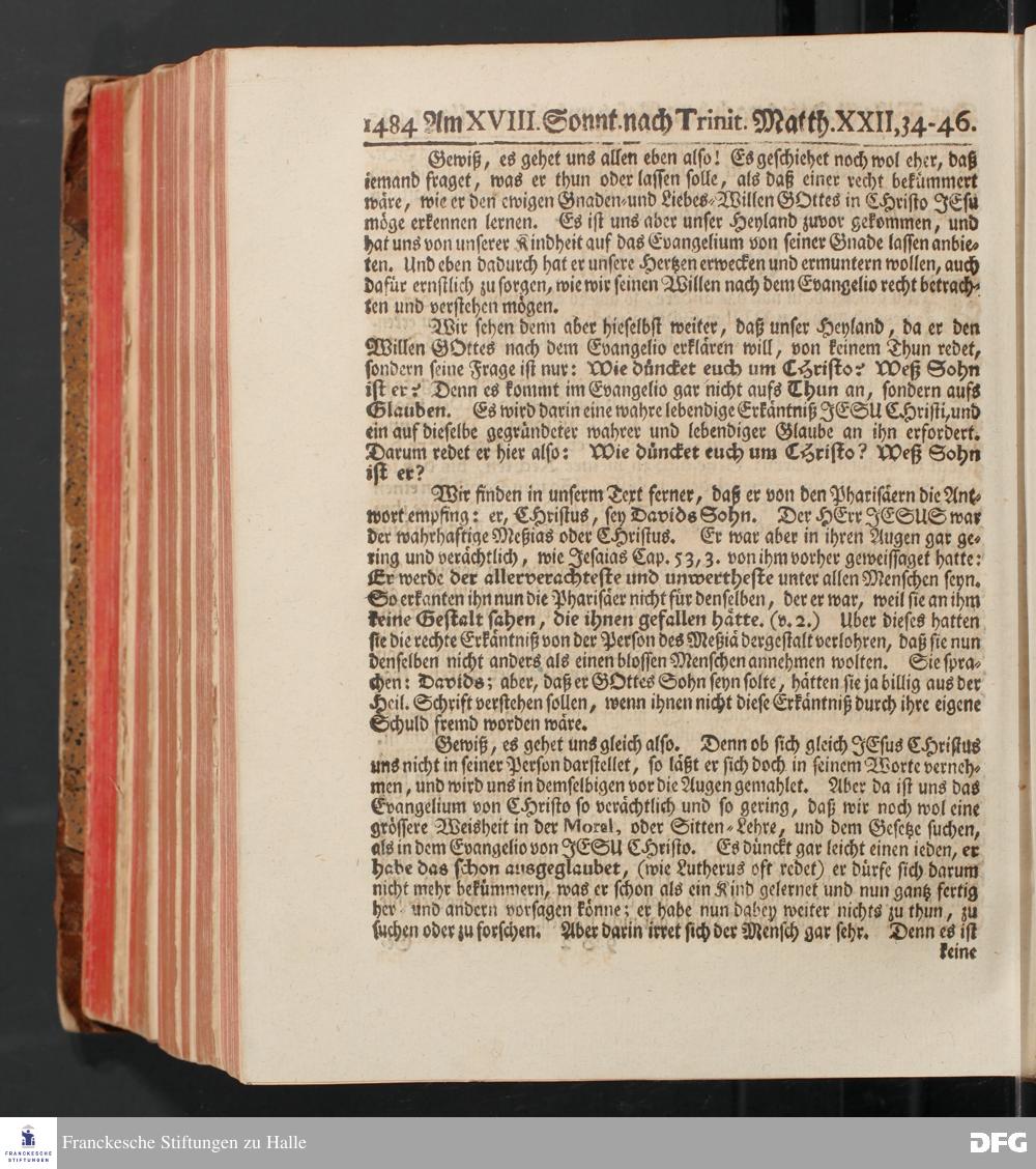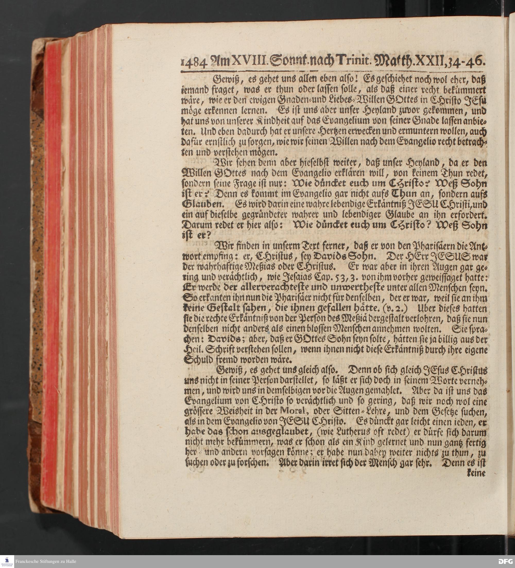 August Hermann Franckens, S.Theol.Prof.und Past. Sonn= und Fest=Tags=Predigten / Welche Theils in Halle, theils an verschiedenen auswärtigen Oertern, von wichtigen und auserlesenen Materien gehalten worden, Nebst Vorbereitung auf die hohen Feste und nützlichen Registern. Dritte Auflage. HALLE, gedruckt und verlegt im Wäysen=Hause MDCCXL. Mit Königl.Preuß.und Churfl.Brandenb.Privileg.