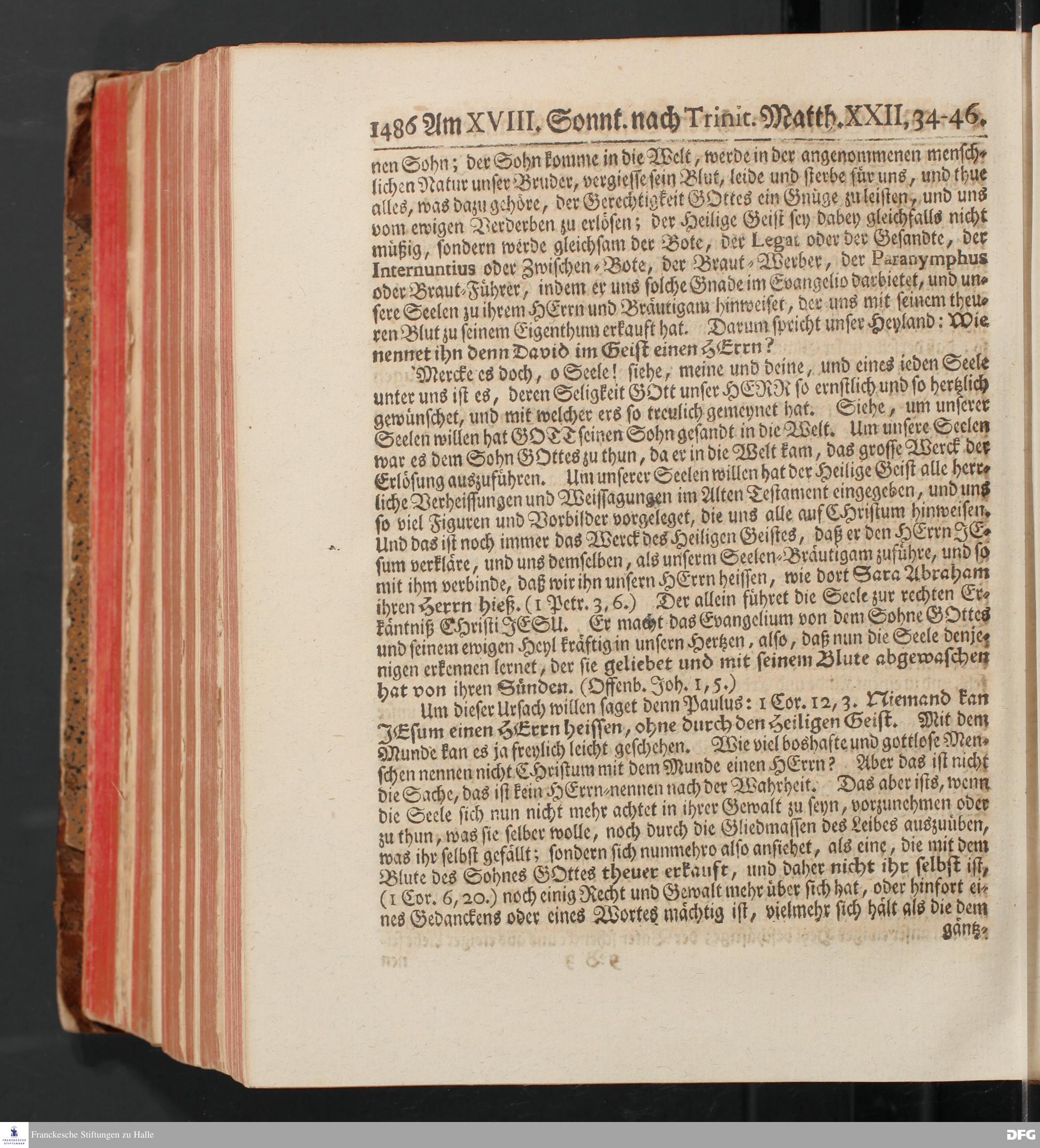August Hermann Franckens, S.Theol.Prof.und Past. Sonn= und Fest=Tags=Predigten / Welche Theils in Halle, theils an verschiedenen auswärtigen Oertern, von wichtigen und auserlesenen Materien gehalten worden, Nebst Vorbereitung auf die hohen Feste und nützlichen Registern. Dritte Auflage. HALLE, gedruckt und verlegt im Wäysen=Hause MDCCXL. Mit Königl.Preuß.und Churfl.Brandenb.Privileg.