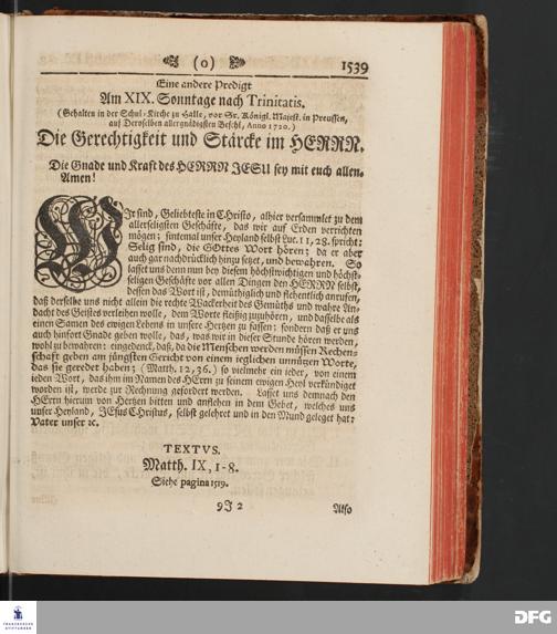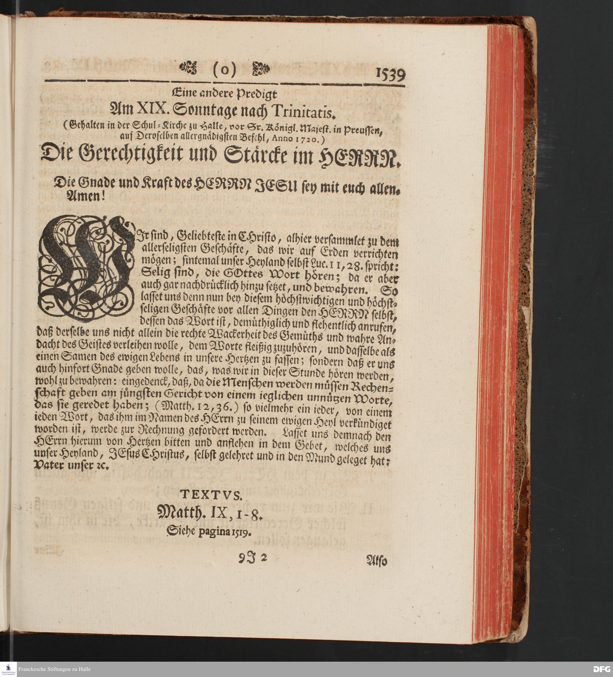 August Hermann Franckens, S.Theol.Prof.und Past. Sonn= und Fest=Tags=Predigten / Welche Theils in Halle, theils an verschiedenen auswärtigen Oertern, von wichtigen und auserlesenen Materien gehalten worden, Nebst Vorbereitung auf die hohen Feste und nützlichen Registern. Dritte Auflage. HALLE, gedruckt und verlegt im Wäysen=Hause MDCCXL. Mit Königl.Preuß.und Churfl.Brandenb.Privileg.