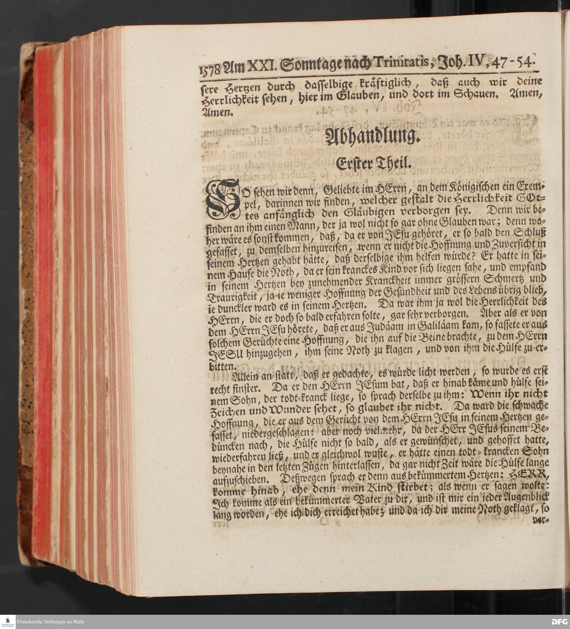 August Hermann Franckens, S.Theol.Prof.und Past. Sonn= und Fest=Tags=Predigten / Welche Theils in Halle, theils an verschiedenen auswärtigen Oertern, von wichtigen und auserlesenen Materien gehalten worden, Nebst Vorbereitung auf die hohen Feste und nützlichen Registern. Dritte Auflage. HALLE, gedruckt und verlegt im Wäysen=Hause MDCCXL. Mit Königl.Preuß.und Churfl.Brandenb.Privileg.