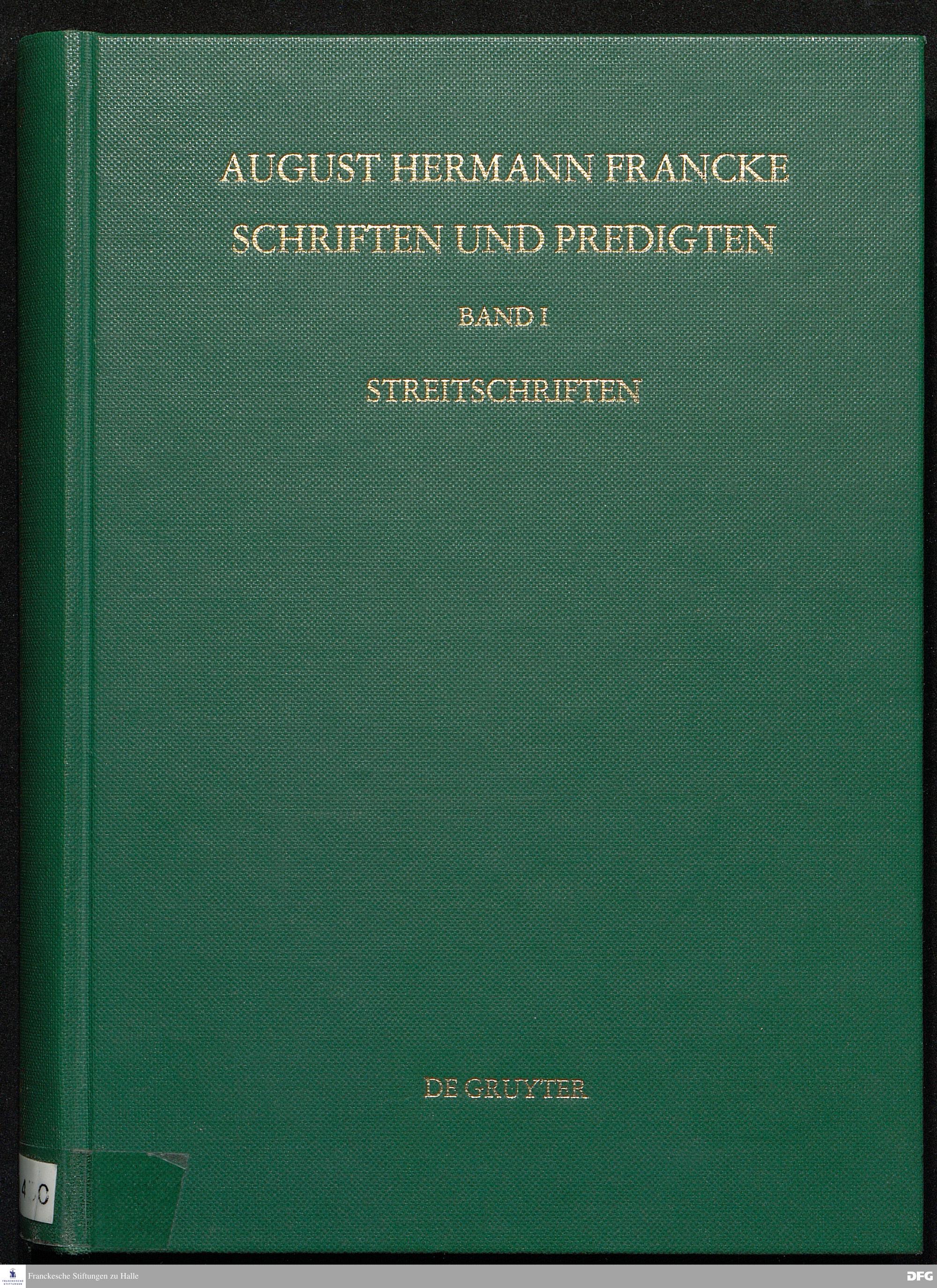 Abt. 2, Bd. 1 (1981) Streitschriften / August Hermann Francke. Hrsg. von Erhard Peschke
