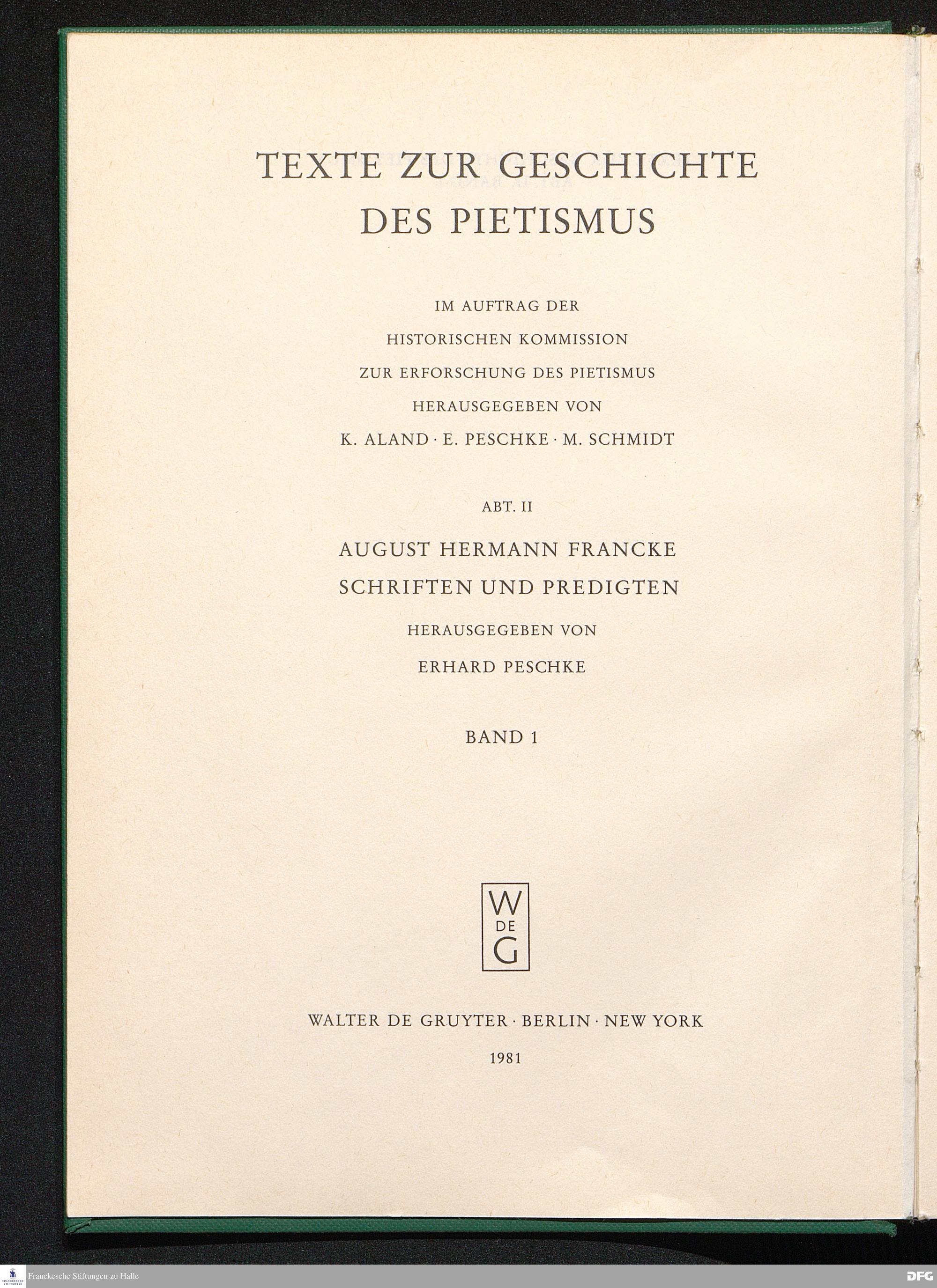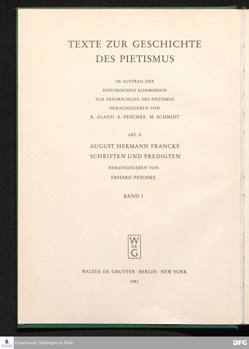 Abt. 2, Bd. 1 (1981) Streitschriften / August Hermann Francke. Hrsg. von Erhard Peschke