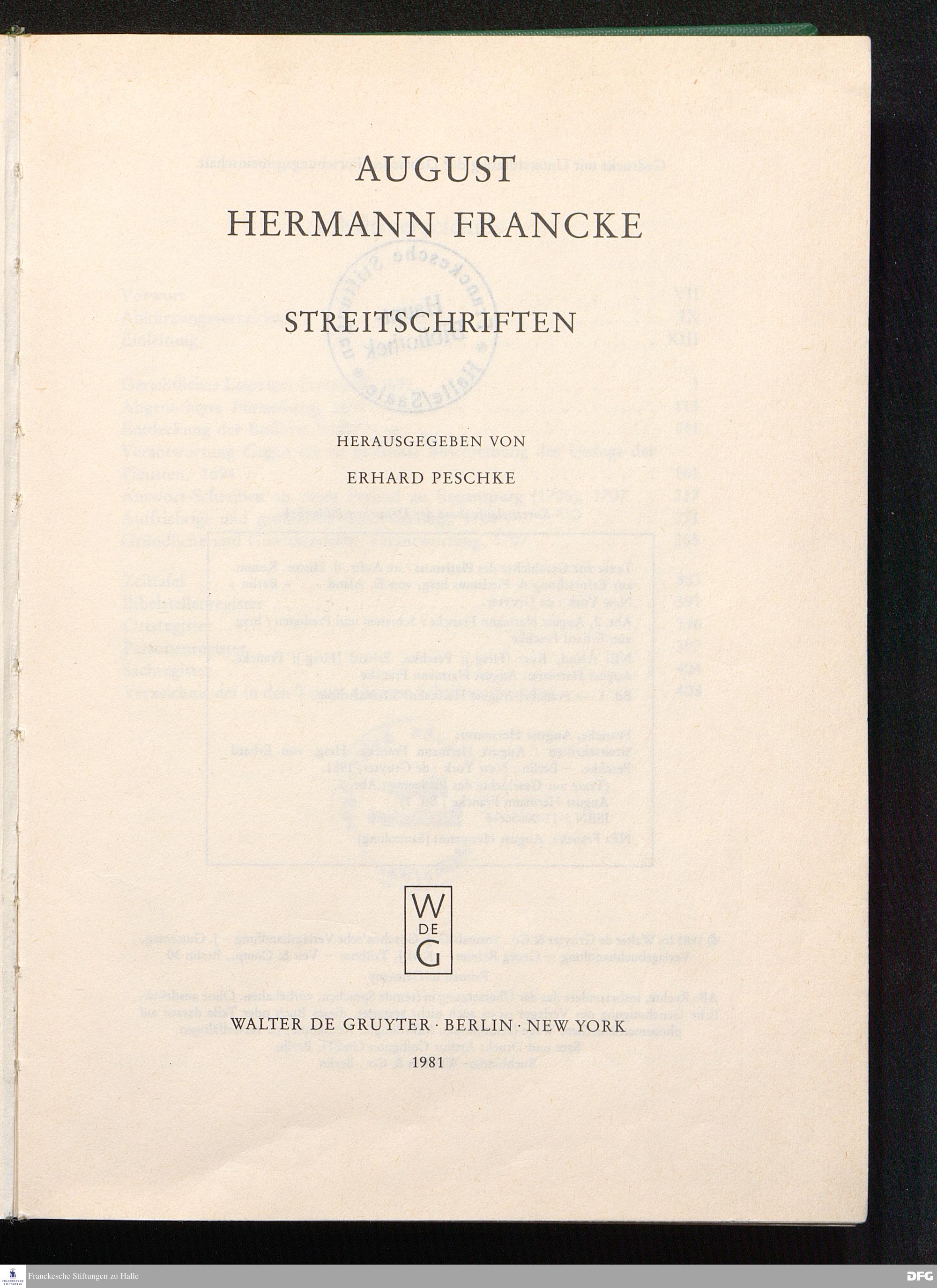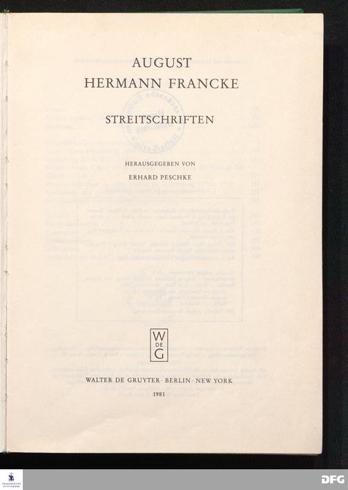 Abt. 2, Bd. 1 (1981) Streitschriften / August Hermann Francke. Hrsg. von Erhard Peschke