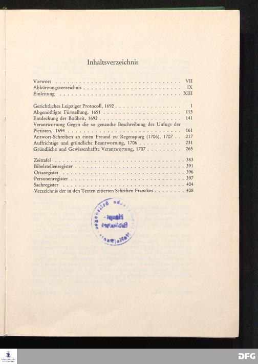 Verzeichnis der in den Texten zitierten Schriften Franckes