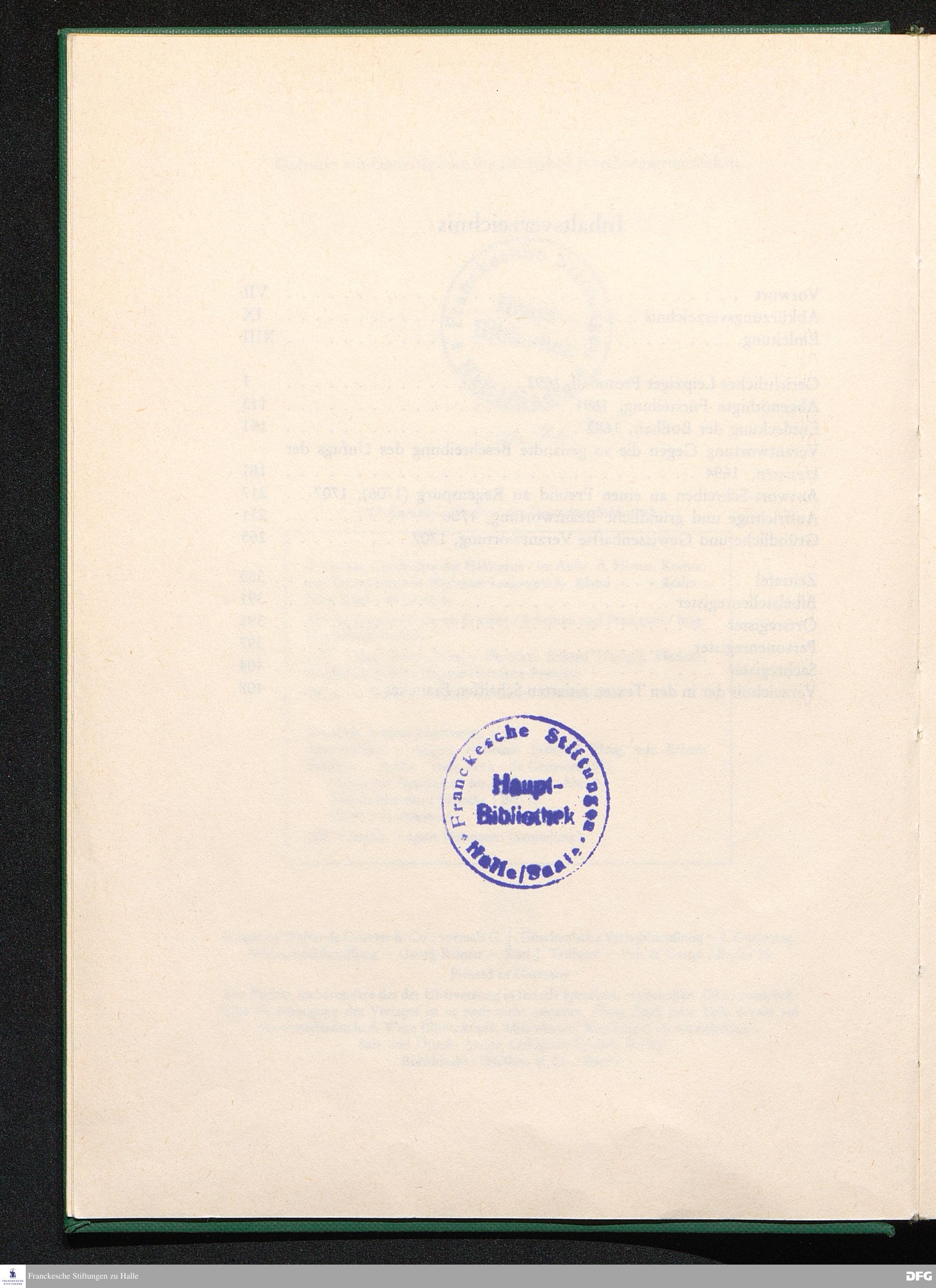 August Hermann Franckens, S. Theol. Prof. zu Halle und Past. zu Glaucha vor Halle, Gründliche und Gewissenhafte Verantwortung gegen Hn. D. Johann Friedrich Mayers, Professoris Theologi auff der Universität zu Greiffswald, harte und unwahrhaffte Beschuldigungen ...