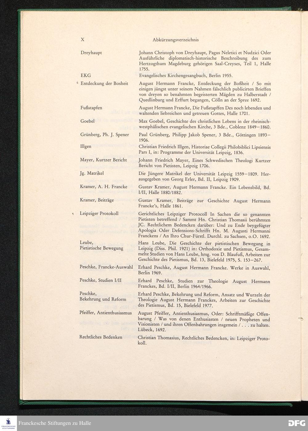 Verzeichnis der in den Texten zitierten Schriften Franckes