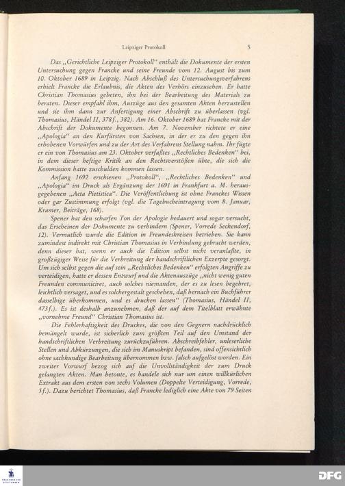 Gerichtliches Leipziger Protocoll In Sachen die so genannten Pietisten betreffend/ Samt Hn. Christian Thomasii. berümten JC. Rechtlichem Bedencken darüber; Und zu Ende beygefügter Apologia Oder Defensions-Schrifft Hn. M. Augusti Hermanni Franckens ...