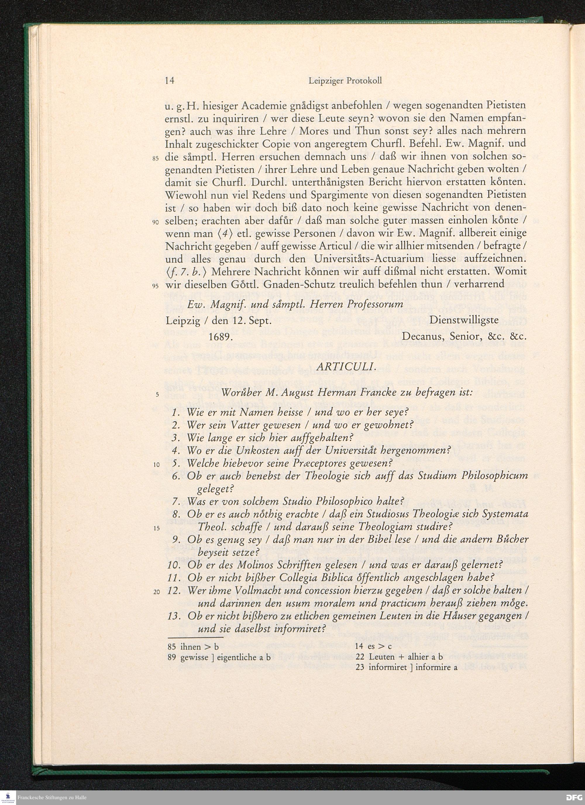Gerichtliches Leipziger Protocoll In Sachen die so genannten Pietisten betreffend/...