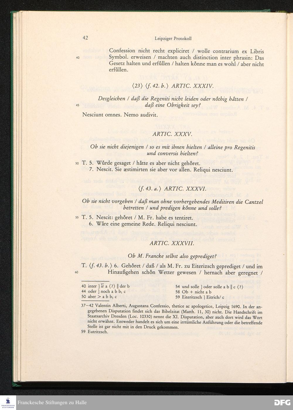 August Hermann Franckens, S. Th. Prof. zu Halle und Past. zu Glaucha vor Halle, Aufrichtige und gründliche Beantwortung Eines an ihn abgelassenen und hiebey abgedruckten Send-Schreibens Eines Christl. Theologi, Der Professorum Theologiae zu Halle ...