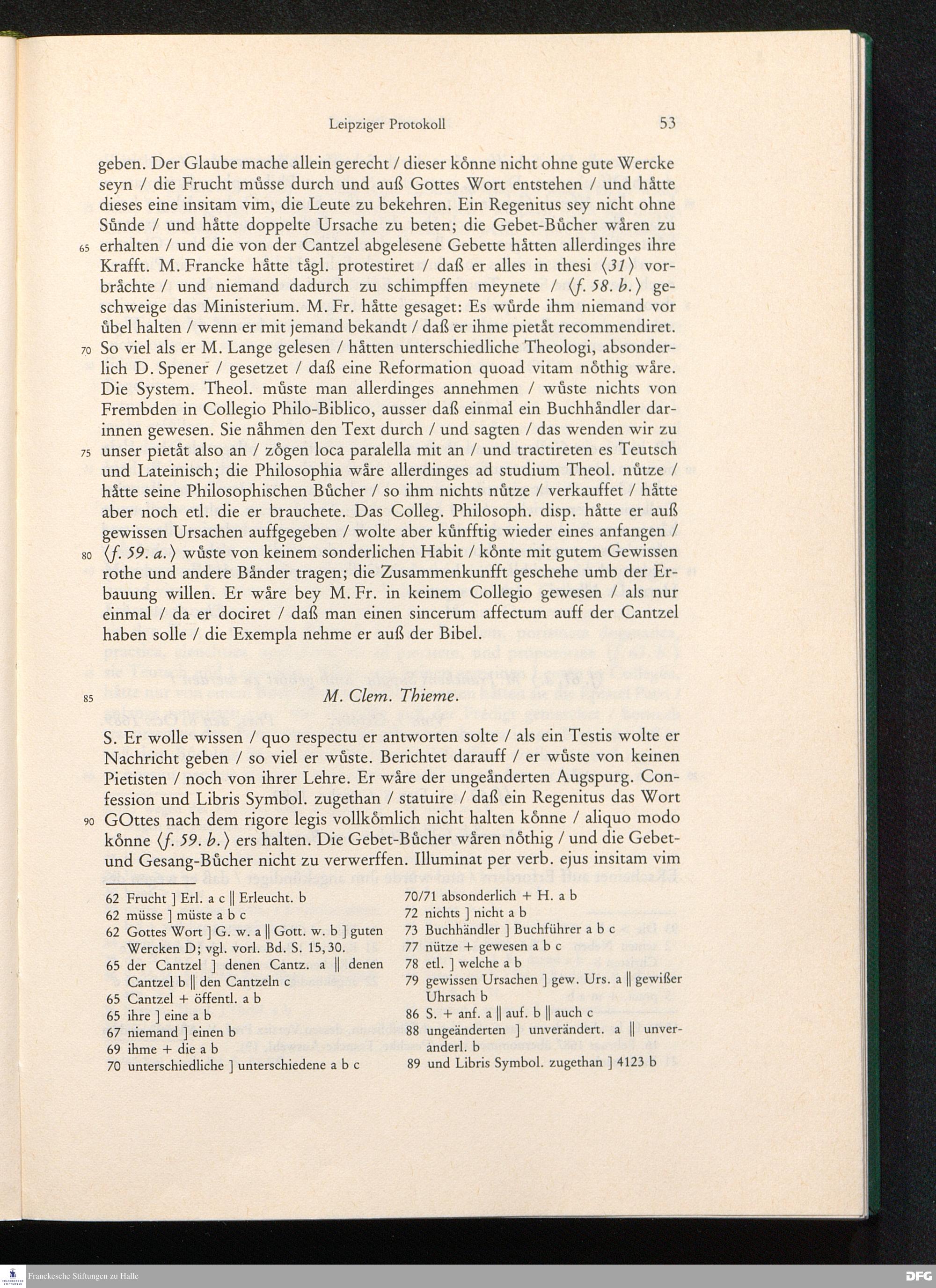 Gerichtliches Leipziger Protocoll In Sachen die so genannten Pietisten betreffend/ Samt Hn. Christian Thomasii. berümten JC. Rechtlichem Bedencken darüber; Und zu Ende beygefügter Apologia Oder Defensions-Schrifft Hn. M. Augusti Hermanni Franckens ...