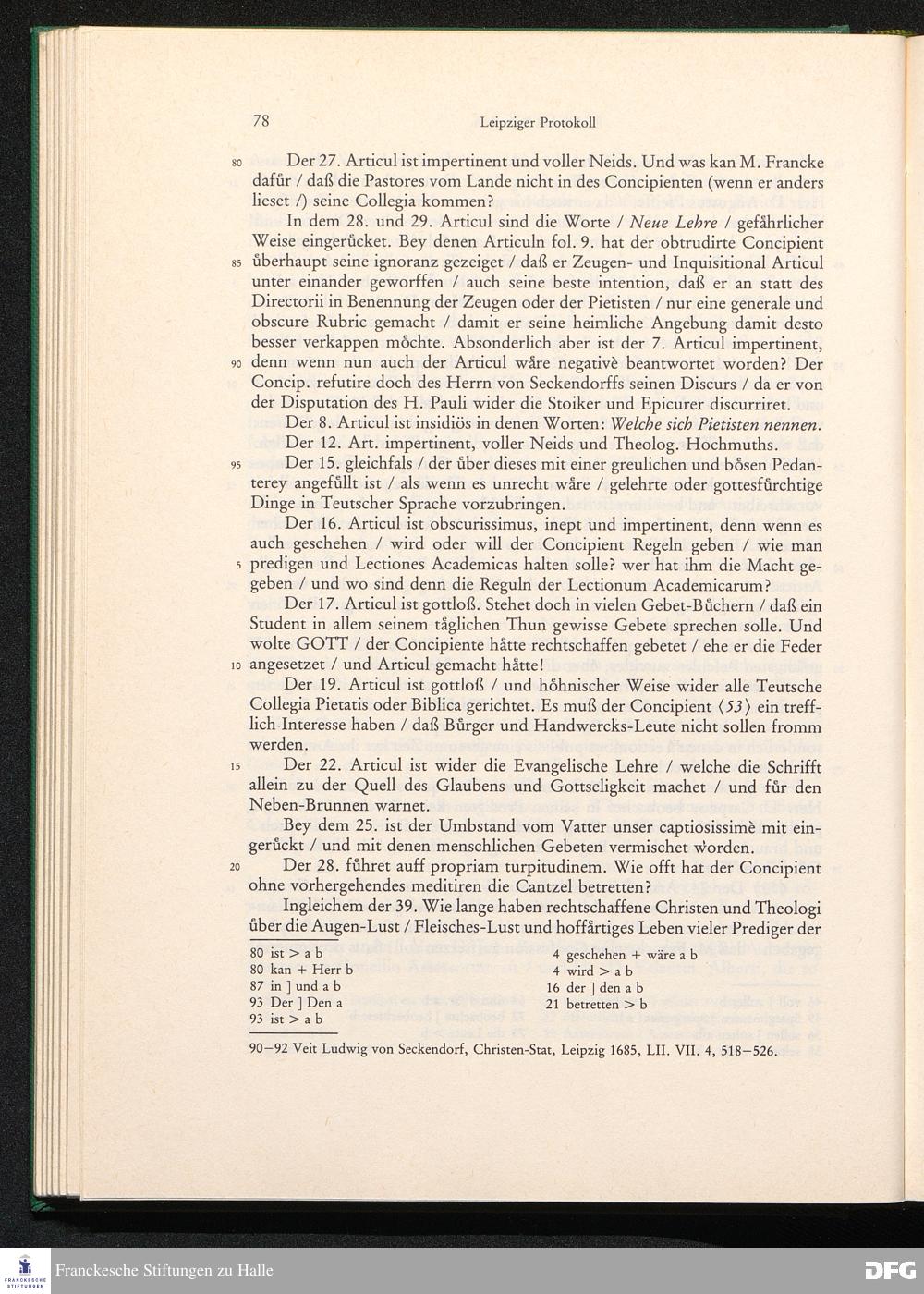 Gerichtliches Leipziger Protocoll In Sachen die so genannten Pietisten betreffend/ Samt Hn. Christian Thomasii. berümten JC. Rechtlichem Bedencken darüber; Und zu Ende beygefügter Apologia Oder Defensions-Schrifft Hn. M. Augusti Hermanni Franckens ...