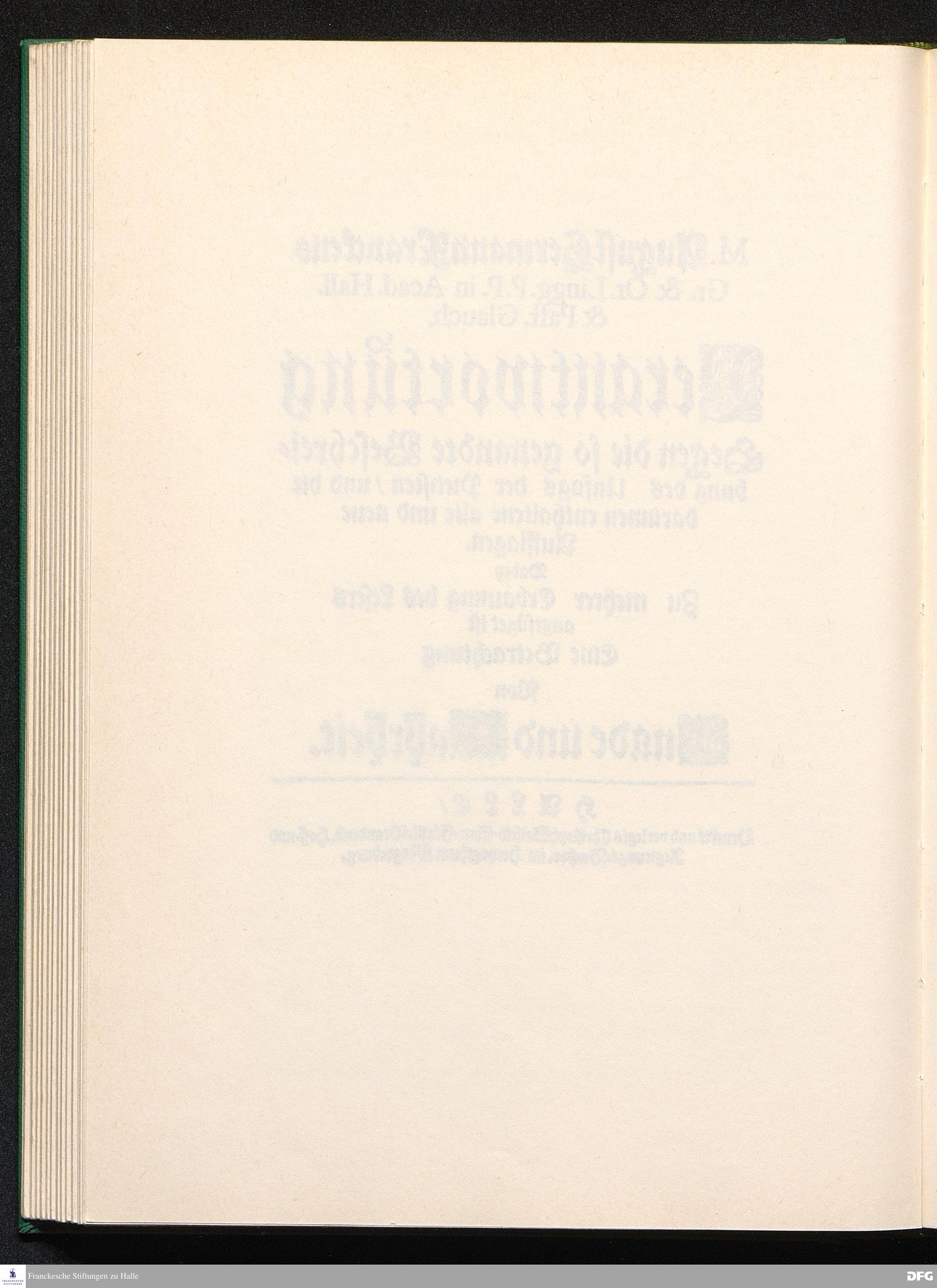 August Hermann Franckens, S. Theol. Prof. zu Halle und Past. zu Glaucha vor Halle, Gründliche und Gewissenhafte Verantwortung gegen Hn. D. Johann Friedrich Mayers, Professoris Theologi auff der Universität zu Greiffswald, harte und unwahrhaffte Beschuldigungen ...