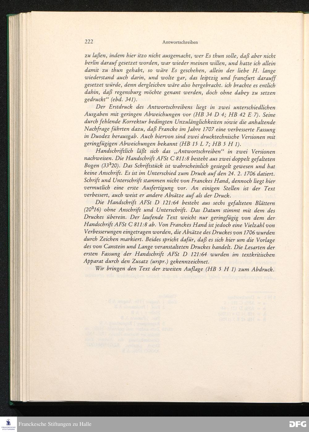Verzeichnis der in den Texten zitierten Schriften Franckes