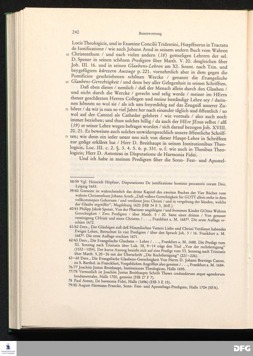 August Hermann Franckens, S. Th. Prof. zu Halle und Past. zu Glaucha vor Halle, Aufrichtige und gründliche Beantwortung Eines an ihn abgelassenen und hiebey abgedruckten Send-Schreibens Eines Christl. Theologi, Der Professorum Theologiae zu Halle ...