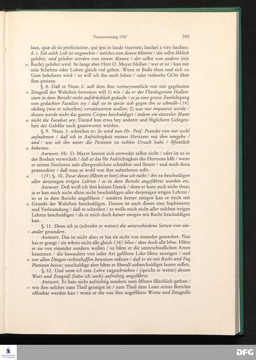 August Hermann Franckens, S. Theol. Prof. zu Halle und Past. zu Glaucha vor Halle, Gründliche und Gewissenhafte Verantwortung gegen Hn. D. Johann Friedrich Mayers, Professoris Theologi auff der Universität zu Greiffswald, harte und unwahrhaffte Beschuldigungen ...