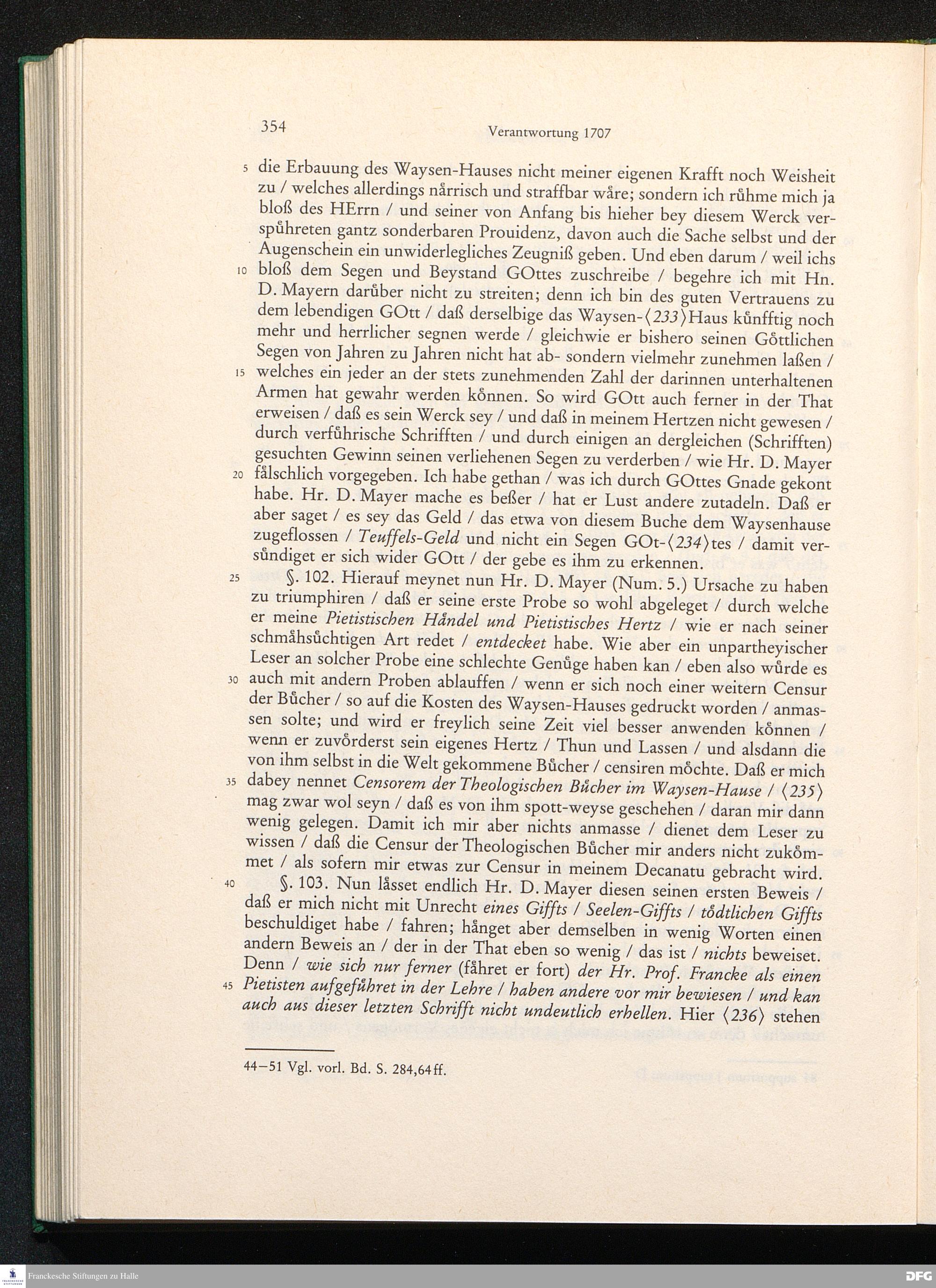 August Hermann Franckens, S. Theol. Prof. zu Halle und Past. zu Glaucha vor Halle, Gründliche und Gewissenhafte Verantwortung gegen Hn. D. Johann Friedrich Mayers, Professoris Theologi auff der Universität zu Greiffswald, harte und unwahrhaffte Beschuldigungen ...