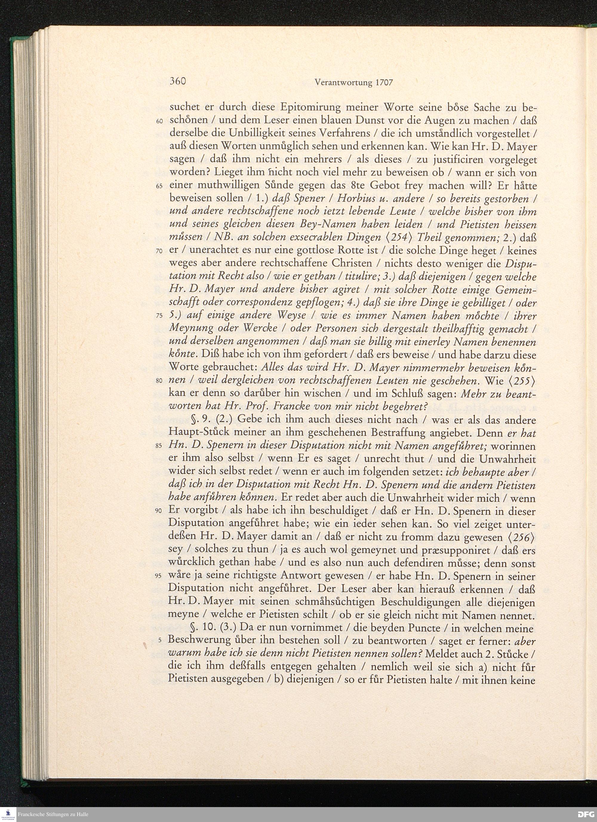 August Hermann Franckens, S. Theol. Prof. zu Halle und Past. zu Glaucha vor Halle, Gründliche und Gewissenhafte Verantwortung gegen Hn. D. Johann Friedrich Mayers, Professoris Theologi auff der Universität zu Greiffswald, harte und unwahrhaffte Beschuldigungen ...