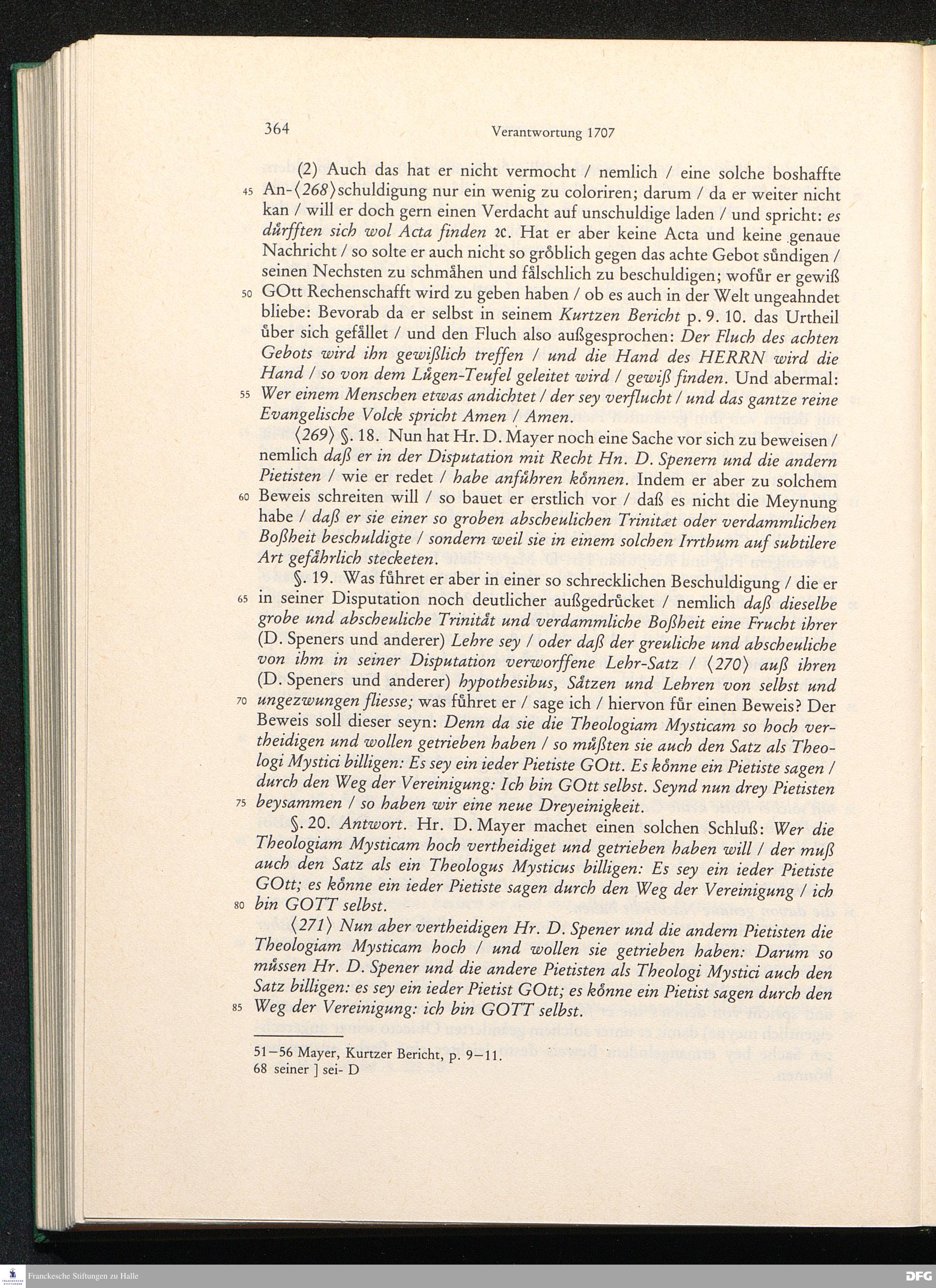 August Hermann Franckens, S. Theol. Prof. zu Halle und Past. zu Glaucha vor Halle, Gründliche und Gewissenhafte Verantwortung gegen Hn. D. Johann Friedrich Mayers, Professoris Theologi auff der Universität zu Greiffswald, harte und unwahrhaffte Beschuldigungen ...