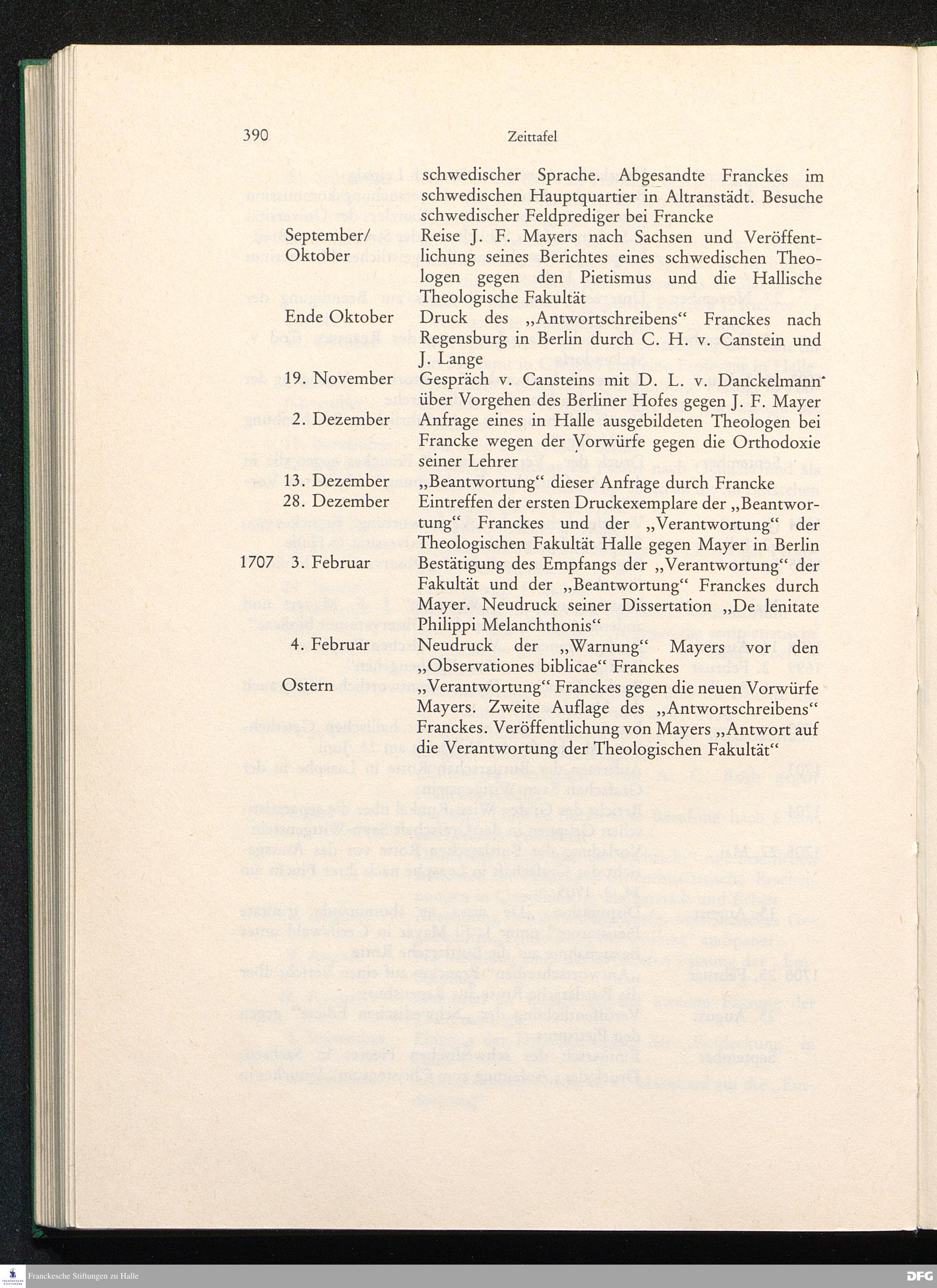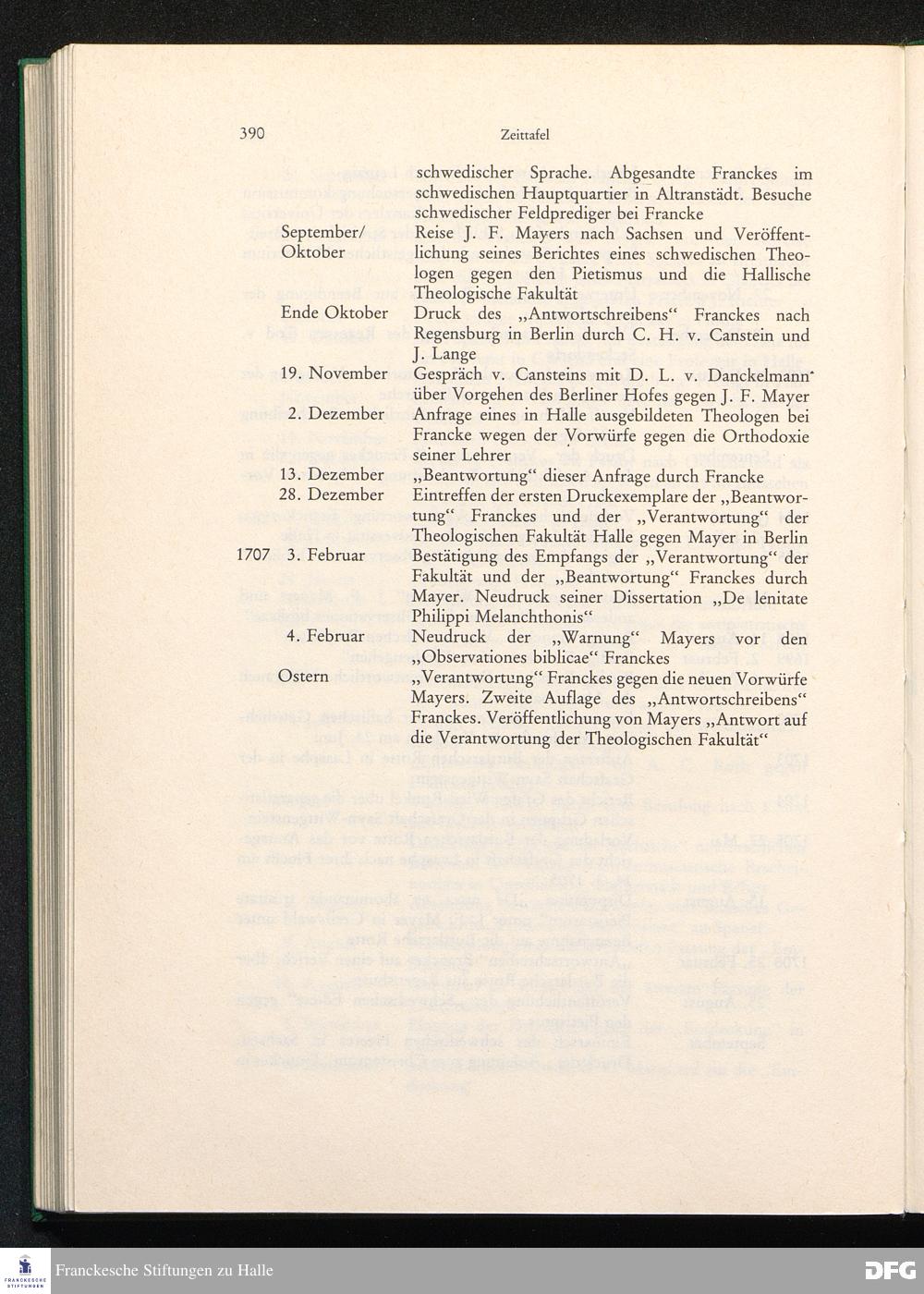 August Hermann Franckens, S. Theol. Prof. zu Halle und Past. zu Glaucha vor Halle, Gründliche und Gewissenhafte Verantwortung gegen Hn. D. Johann Friedrich Mayers, Professoris Theologi auff der Universität zu Greiffswald, harte und unwahrhaffte Beschuldigungen ...