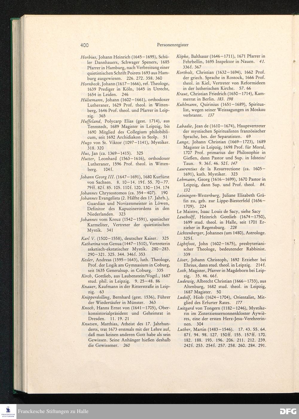 Verzeichnis der in den Texten zitierten Schriften Franckes