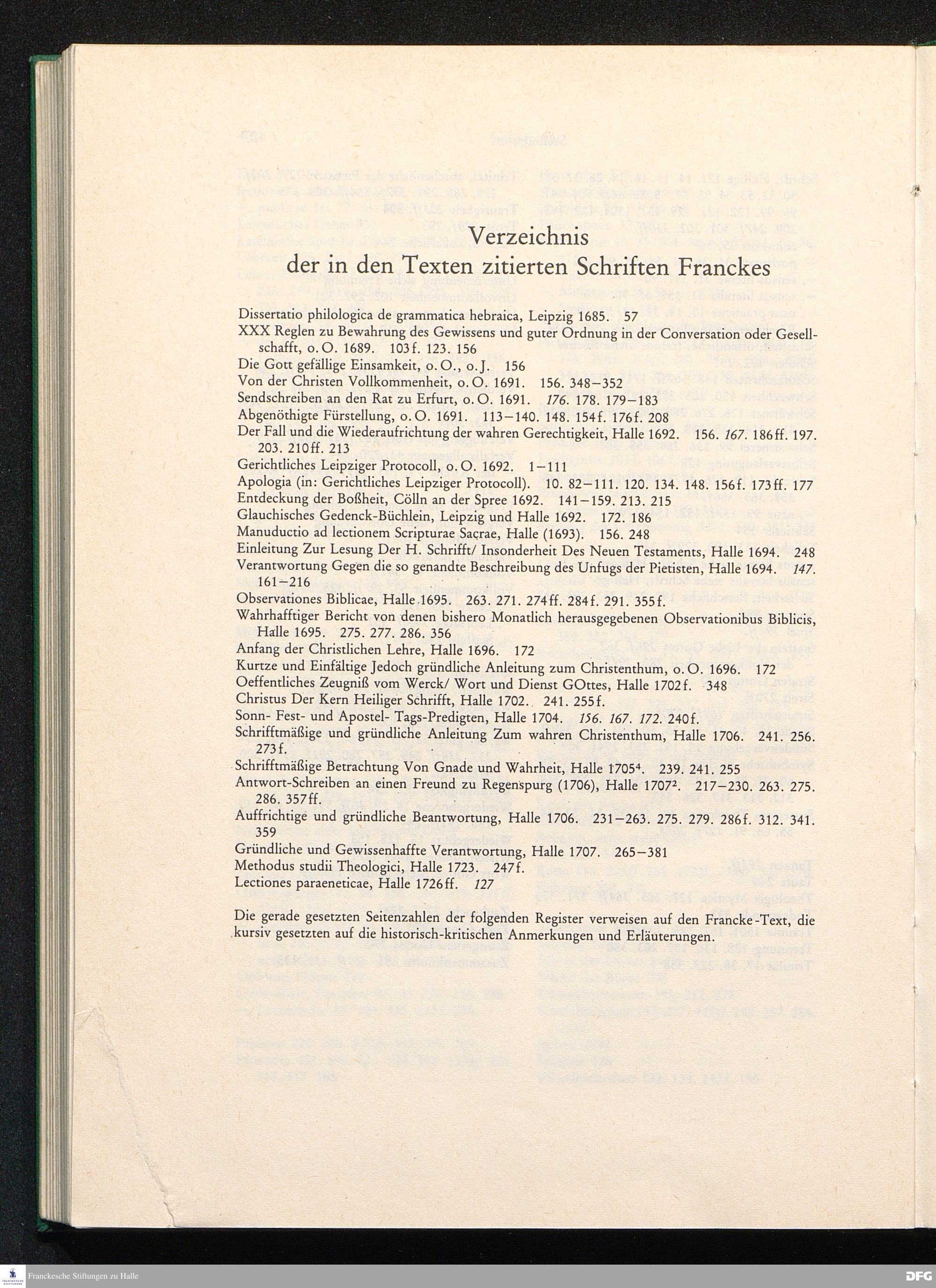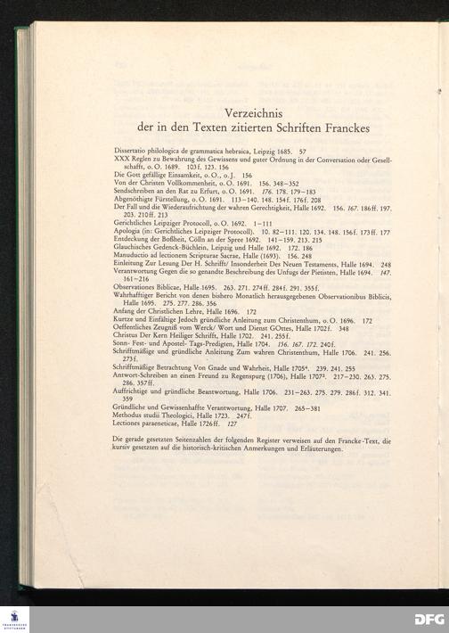 Verzeichnis der in den Texten zitierten Schriften Franckes