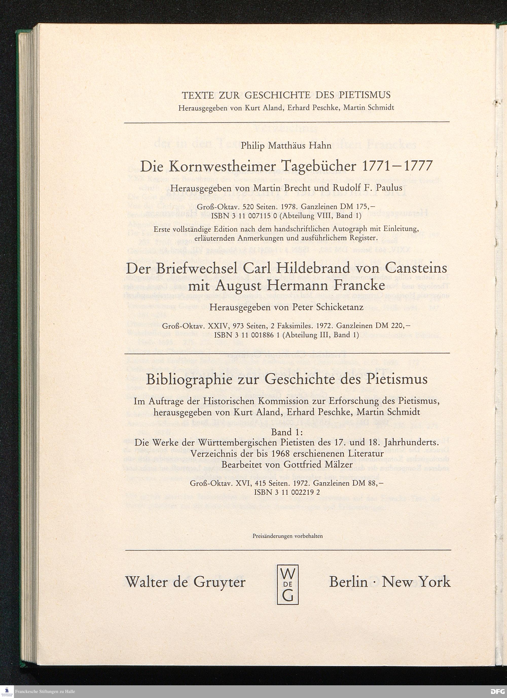 Abt. 2, Bd. 1 (1981) Streitschriften / August Hermann Francke. Hrsg. von Erhard Peschke