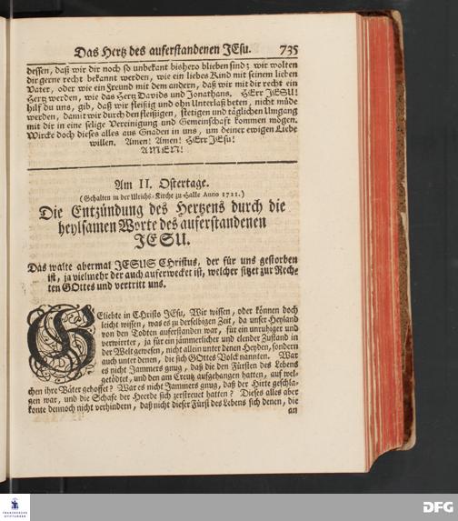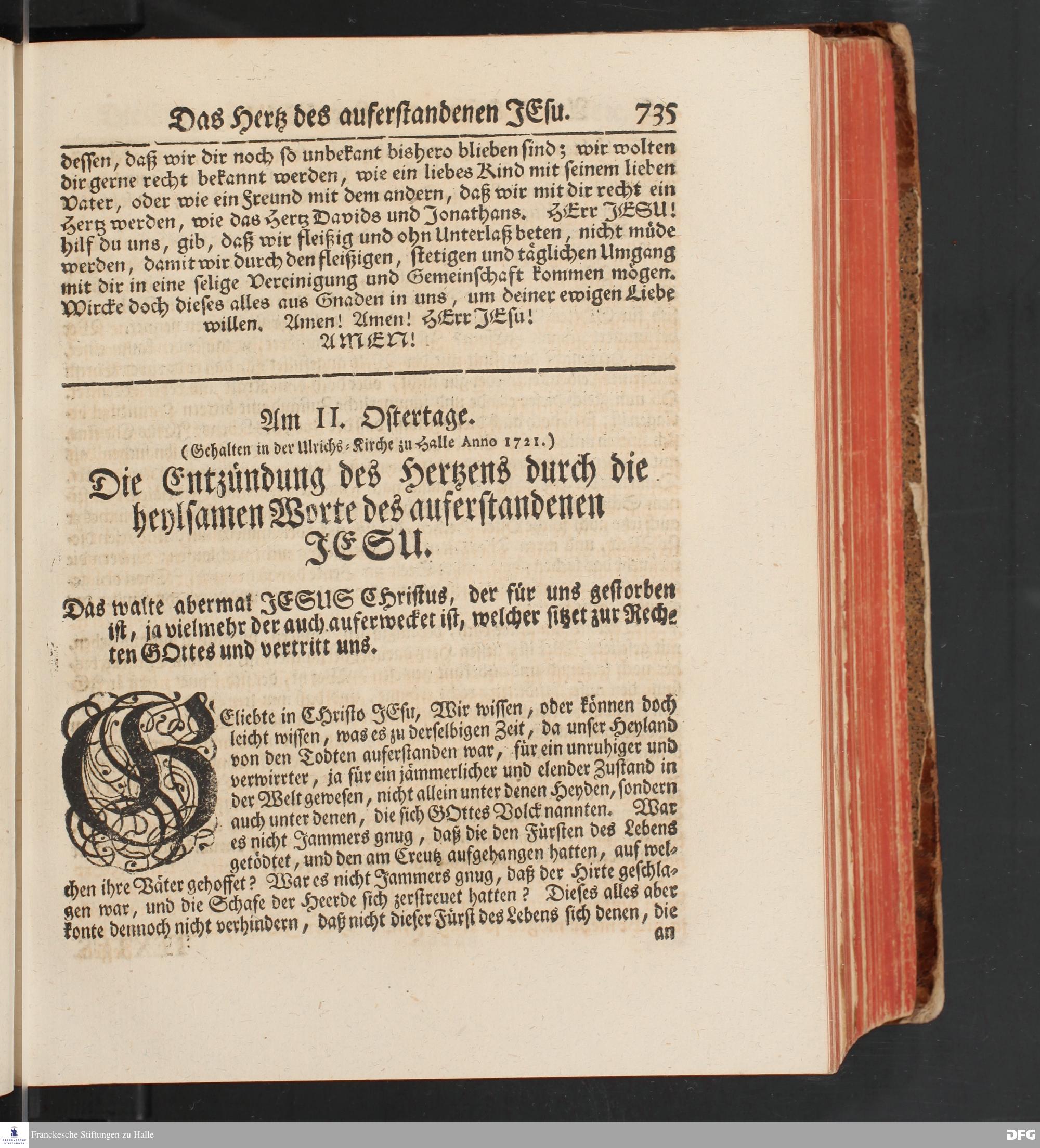 August Hermann Franckens, S.Theol.Prof.und Past. Sonn= und Fest=Tags=Predigten / Welche Theils in Halle, theils an verschiedenen auswärtigen Oertern, von wichtigen und auserlesenen Materien gehalten worden, Nebst Vorbereitung auf die hohen Feste und nützlichen Registern. Dritte Auflage. HALLE, gedruckt und verlegt im Wäysen=Hause MDCCXL. Mit Königl.Preuß.und Churfl.Brandenb.Privileg.