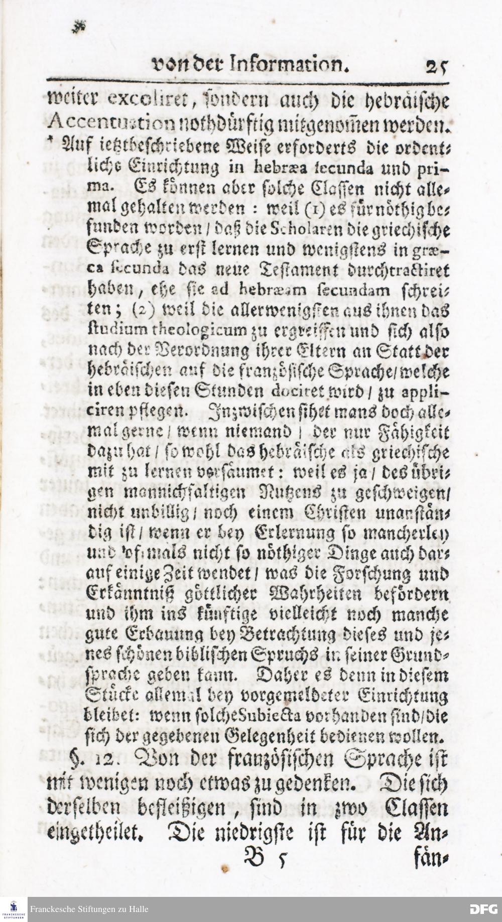 Kurzer Bericht Von der Gegenwärtigen Verfassung Des PAEDAGOGII REGII Zu Glaucha vor Halle / Aus der vormals schon edirten, nunmehro aber in vielen Stücken nach und nach verbesserten Ordnung und Lehrart herausgezogen. HALLE, Zu finden im Wäisenhause, MDCCXIV.