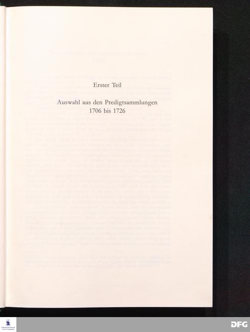 Erster Teil: Auswahl aus den Predigtsammlungen 1706 bis 1726