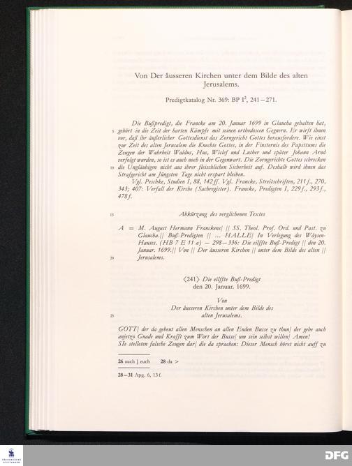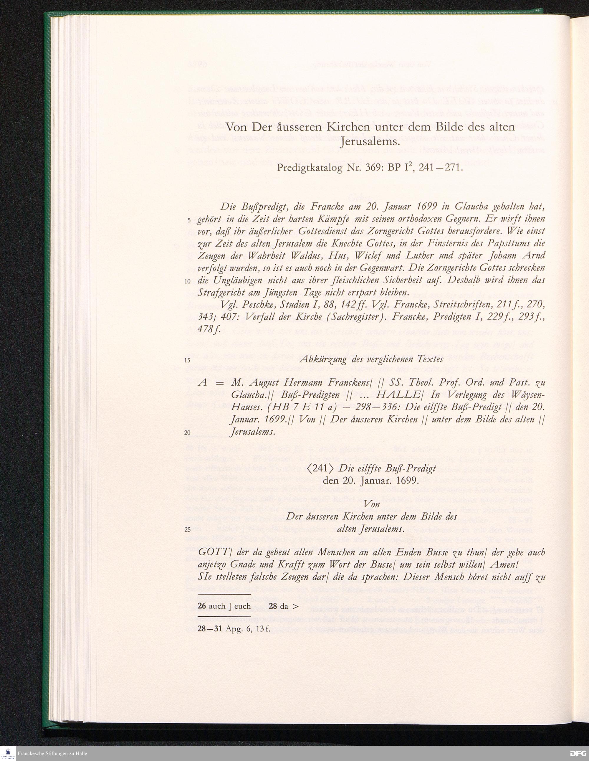 Erster Teil: Auswahl aus den Predigtsammlungen 1706 bis 1726