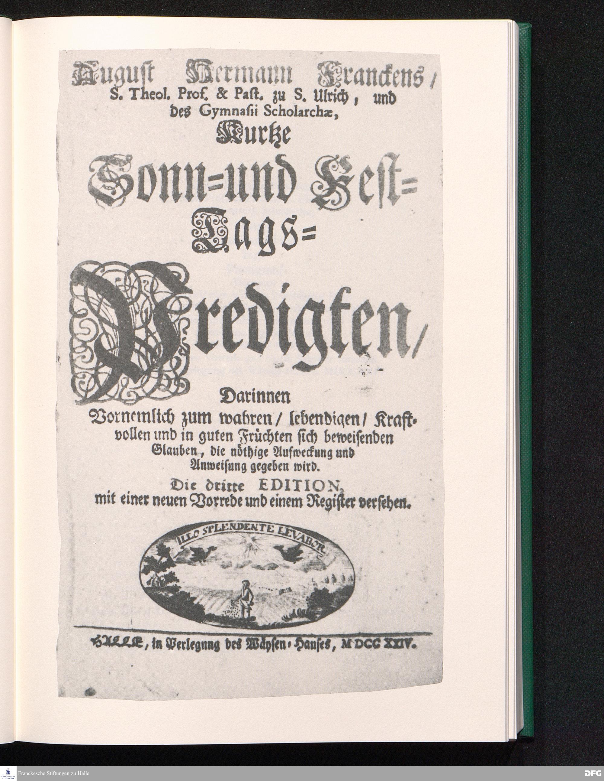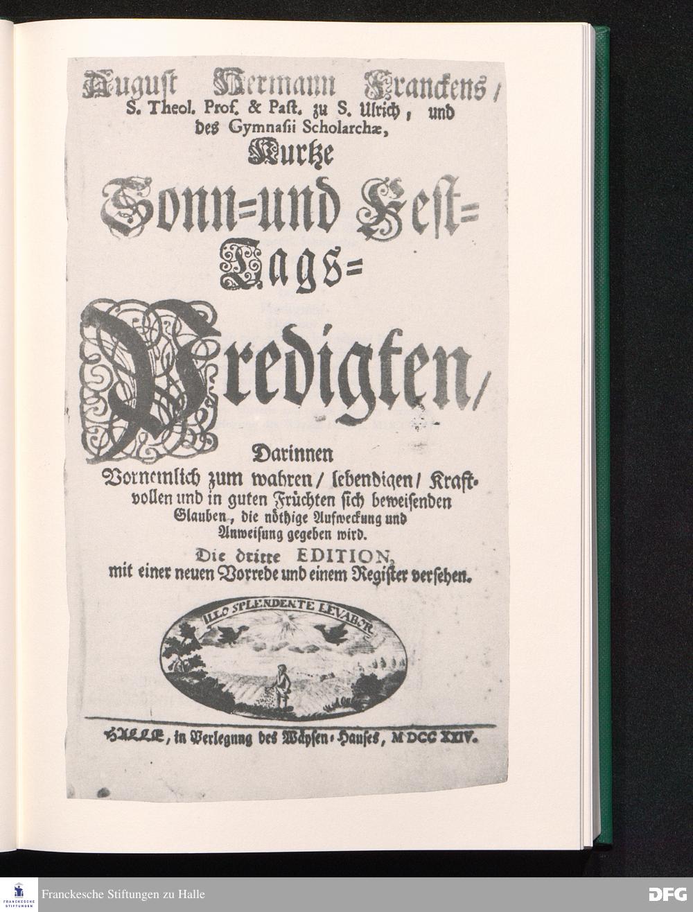 Erster Teil: Auswahl aus den Predigtsammlungen 1706 bis 1726