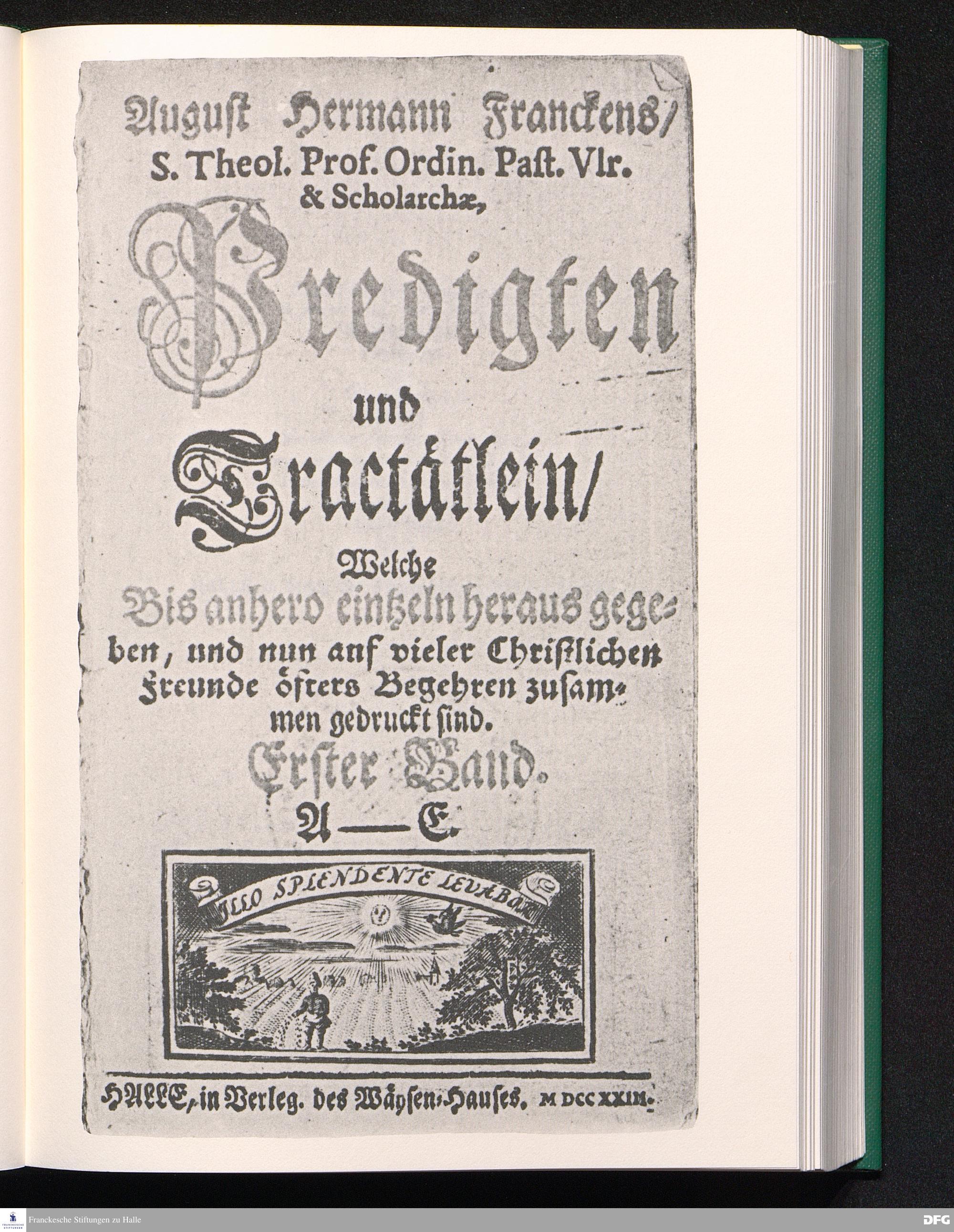 Erster Teil: Auswahl aus den Predigtsammlungen 1706 bis 1726