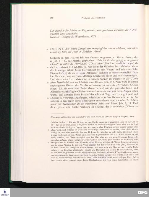 Erster Teil: Auswahl aus den Predigtsammlungen 1706 bis 1726