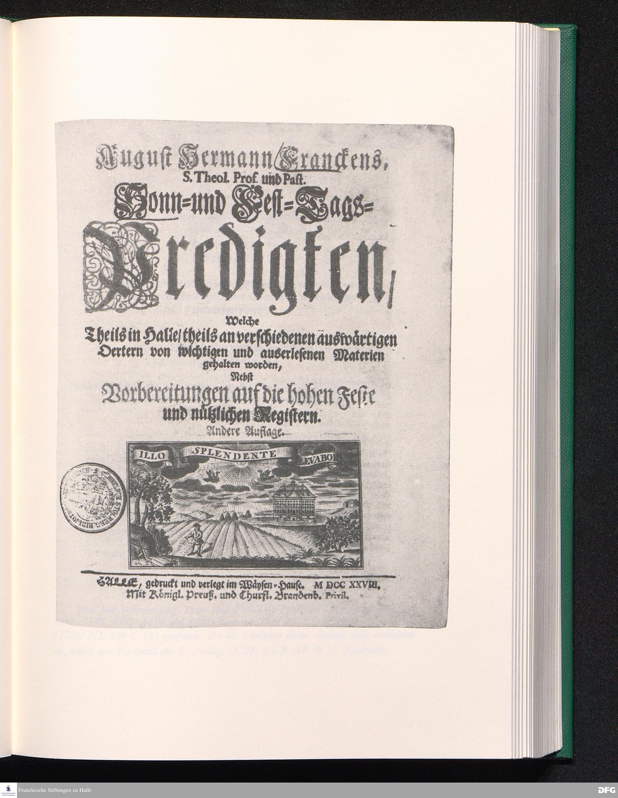 Erster Teil: Auswahl aus den Predigtsammlungen 1706 bis 1726