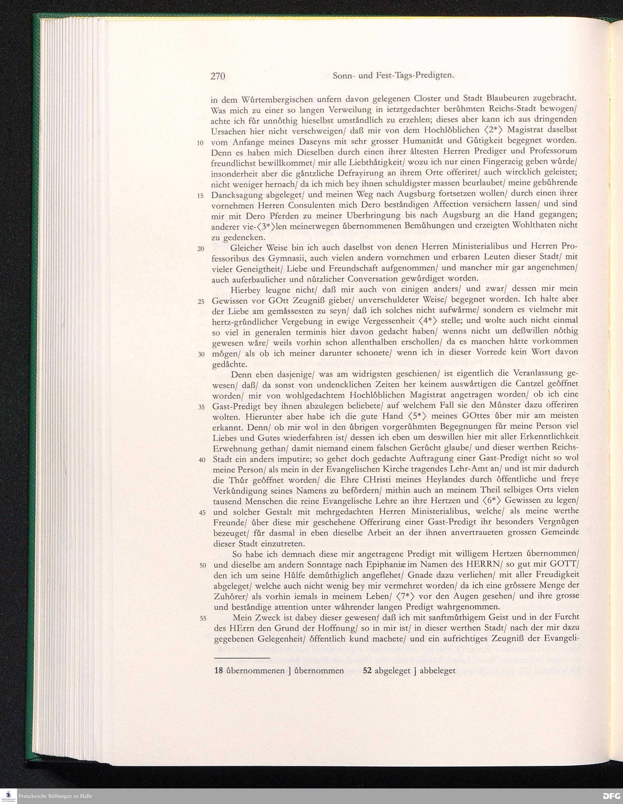 Erster Teil: Auswahl aus den Predigtsammlungen 1706 bis 1726