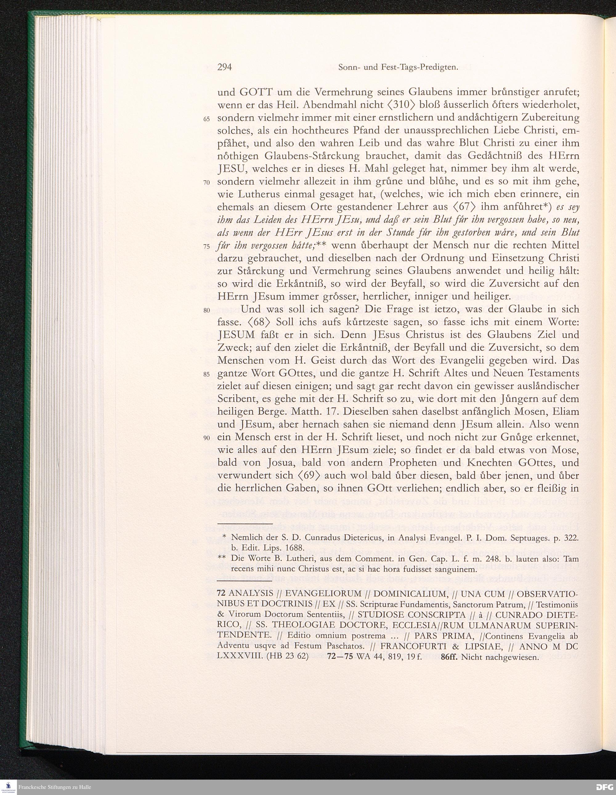 Erster Teil: Auswahl aus den Predigtsammlungen 1706 bis 1726